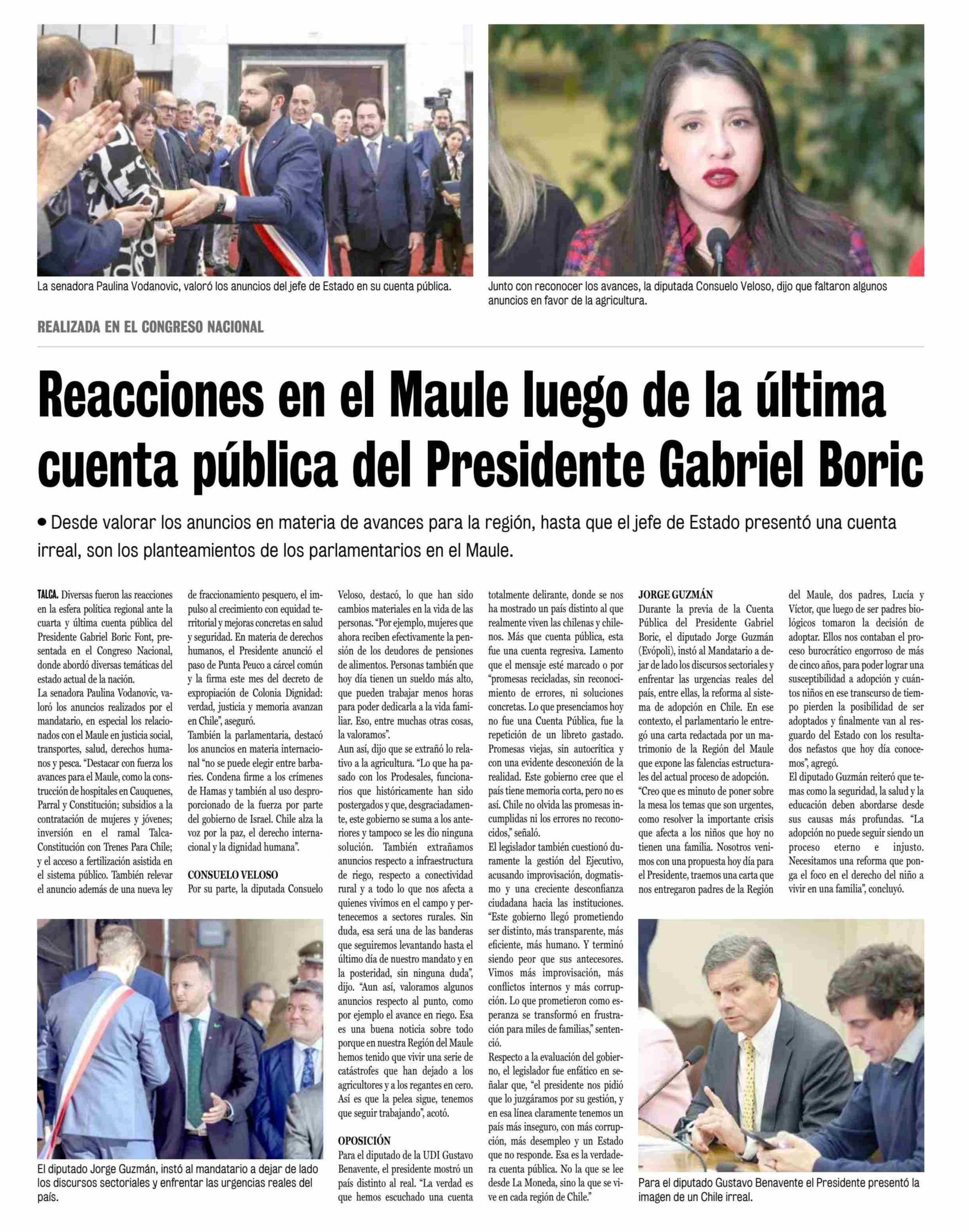 Reacciones en el Maule luego de la última cuenta pública del Presidente Gabriel Boric 02-06-2025 La Prensa de Curicó |