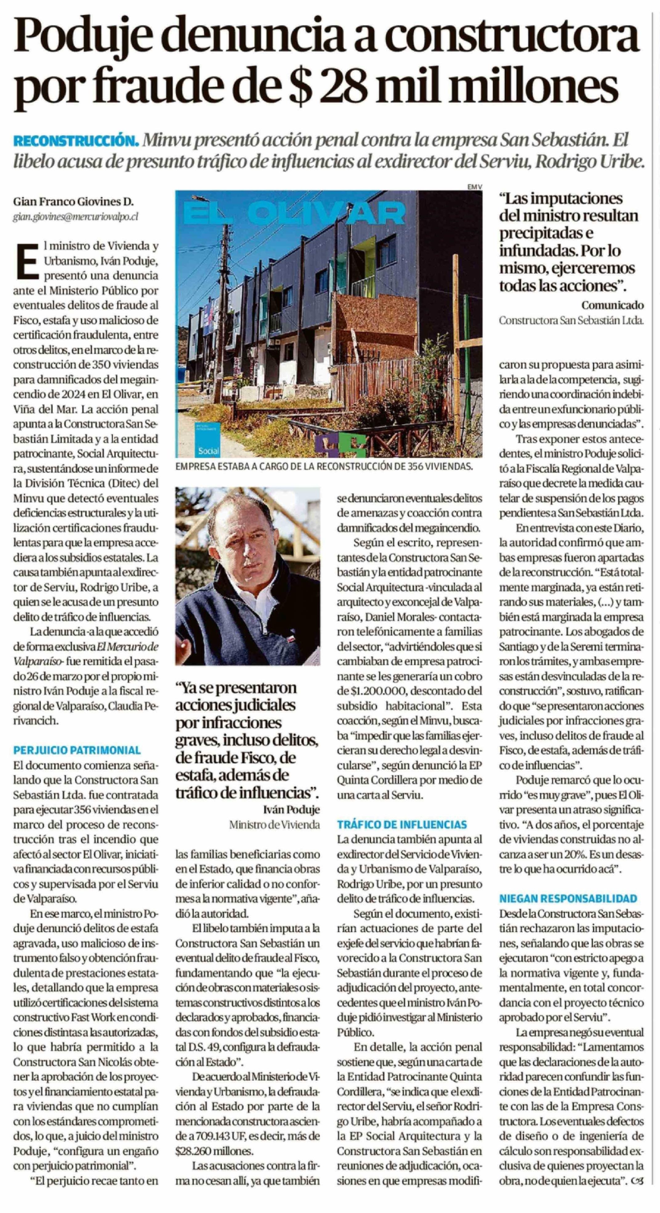 Título: Poduje denuncia a constructora por fraude de $ 28 mil millones