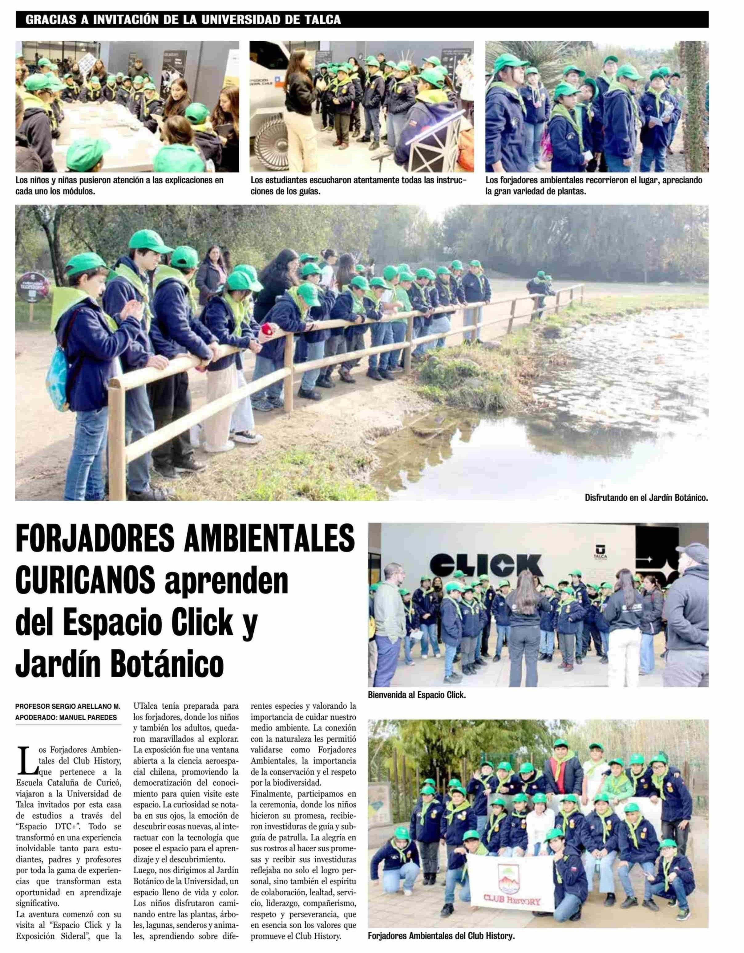 Título: FORJADORES AMBIENTALES CURICANOS aprenden del Espacio Click y Jardín Botánico