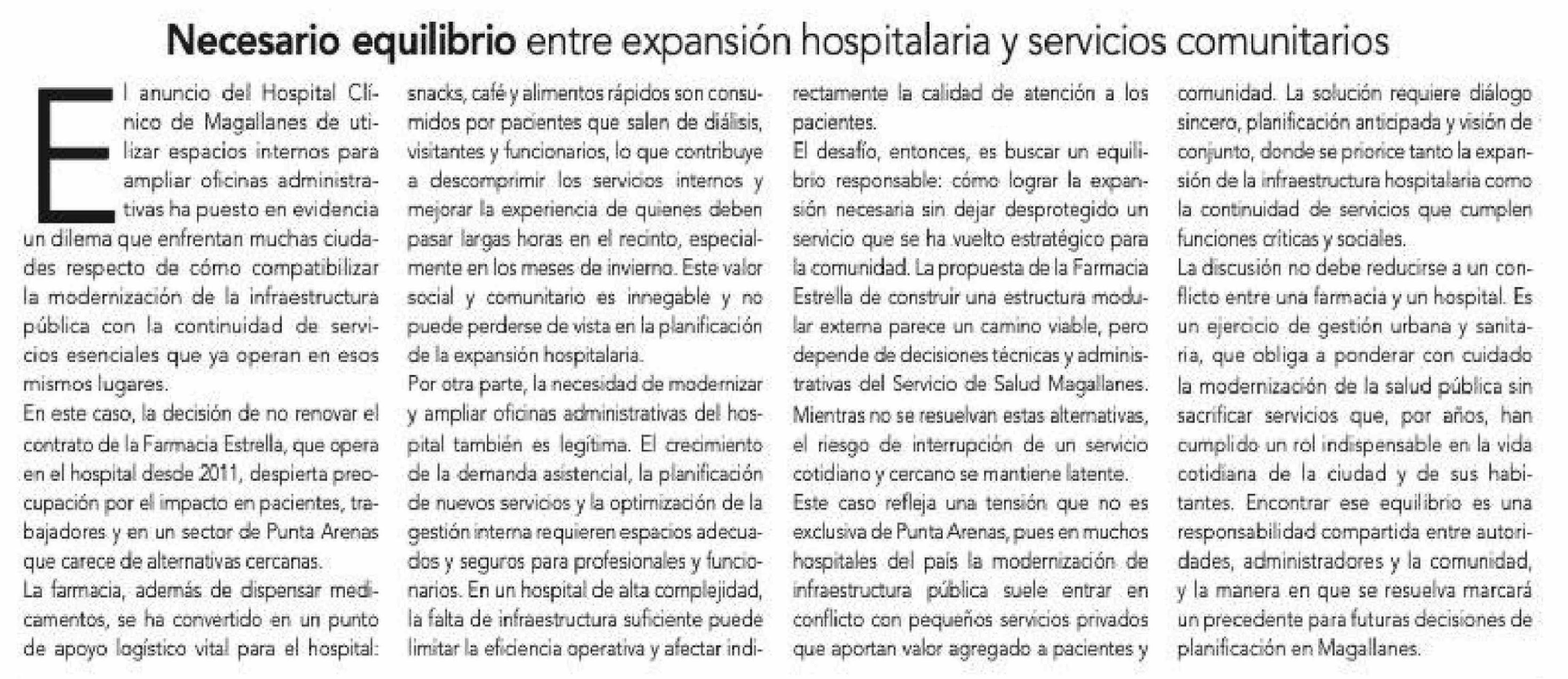 Editorial: Necesario equilibrio entre expansión hospitalaria y servicios comunitarios 10-03-2026 La Prensa Austral |