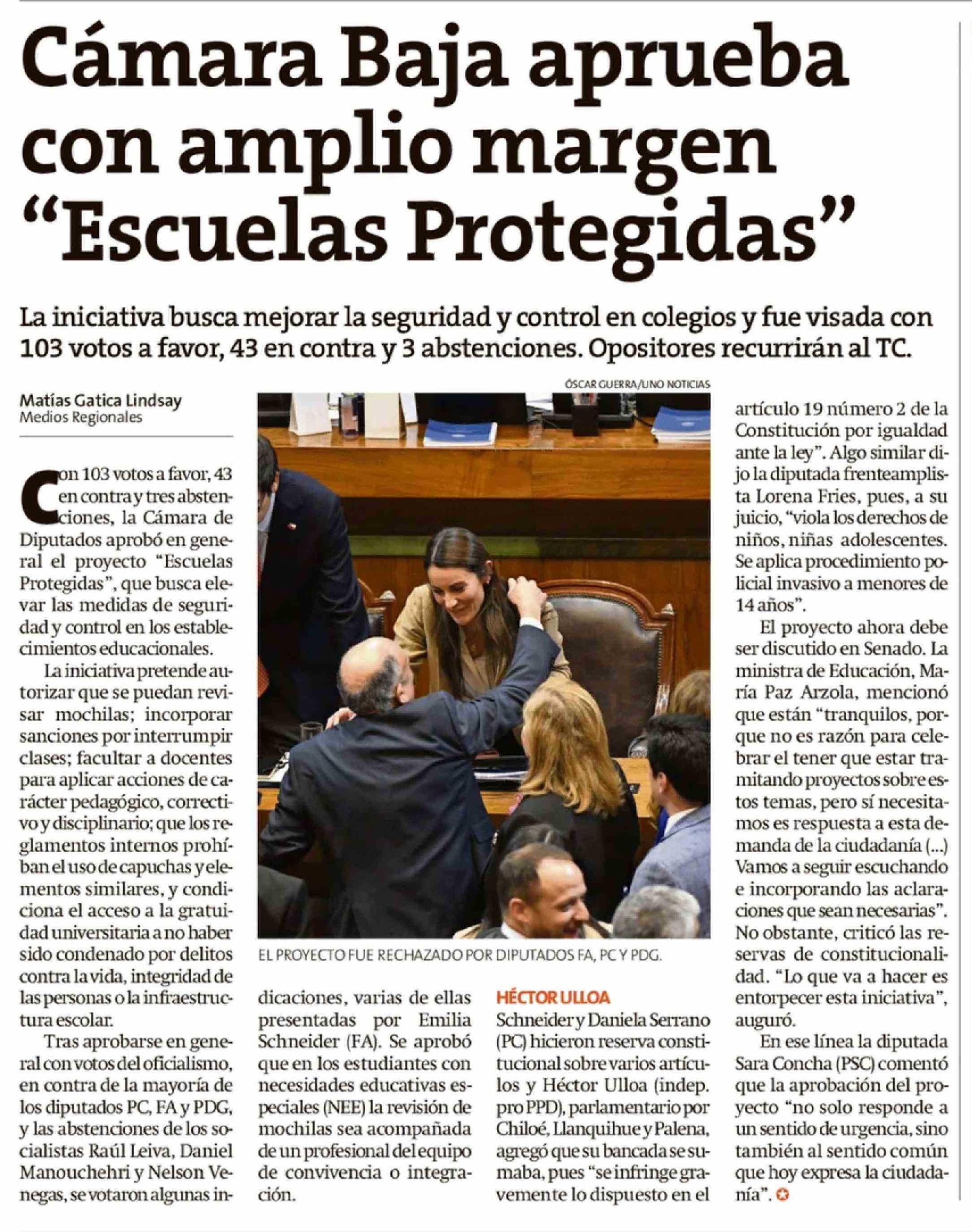 Título: Cámara Baja aprueba con amplio margen "Escuelas Protegidas"