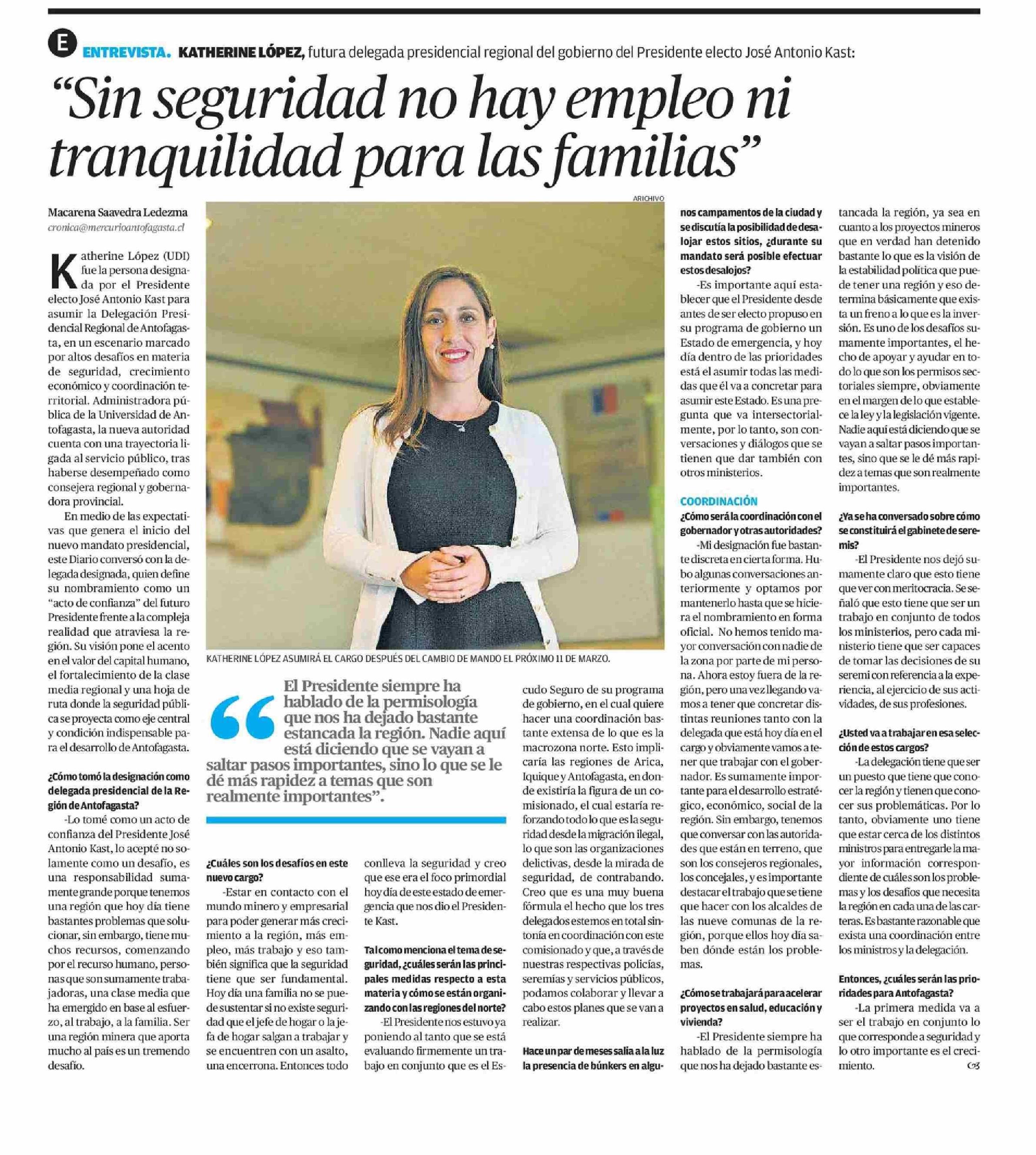 "Sin seguridad no hay empleo ni tranquilidad para las familias" 10-02-2026 El Mercurio de Calama |