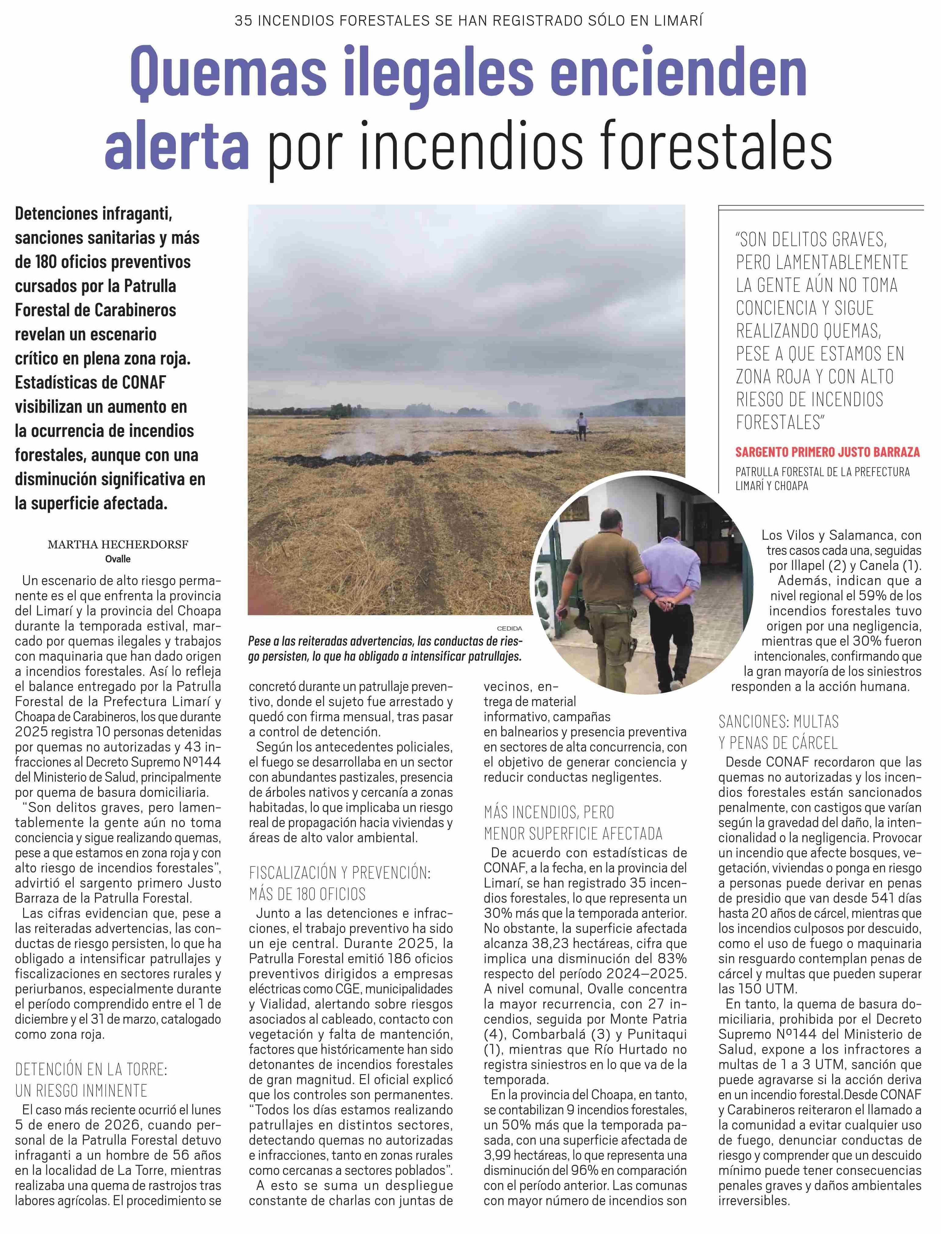 Quemas ilegales encienden alerta por incendios forestales 11-01-2026 El Ovallino |