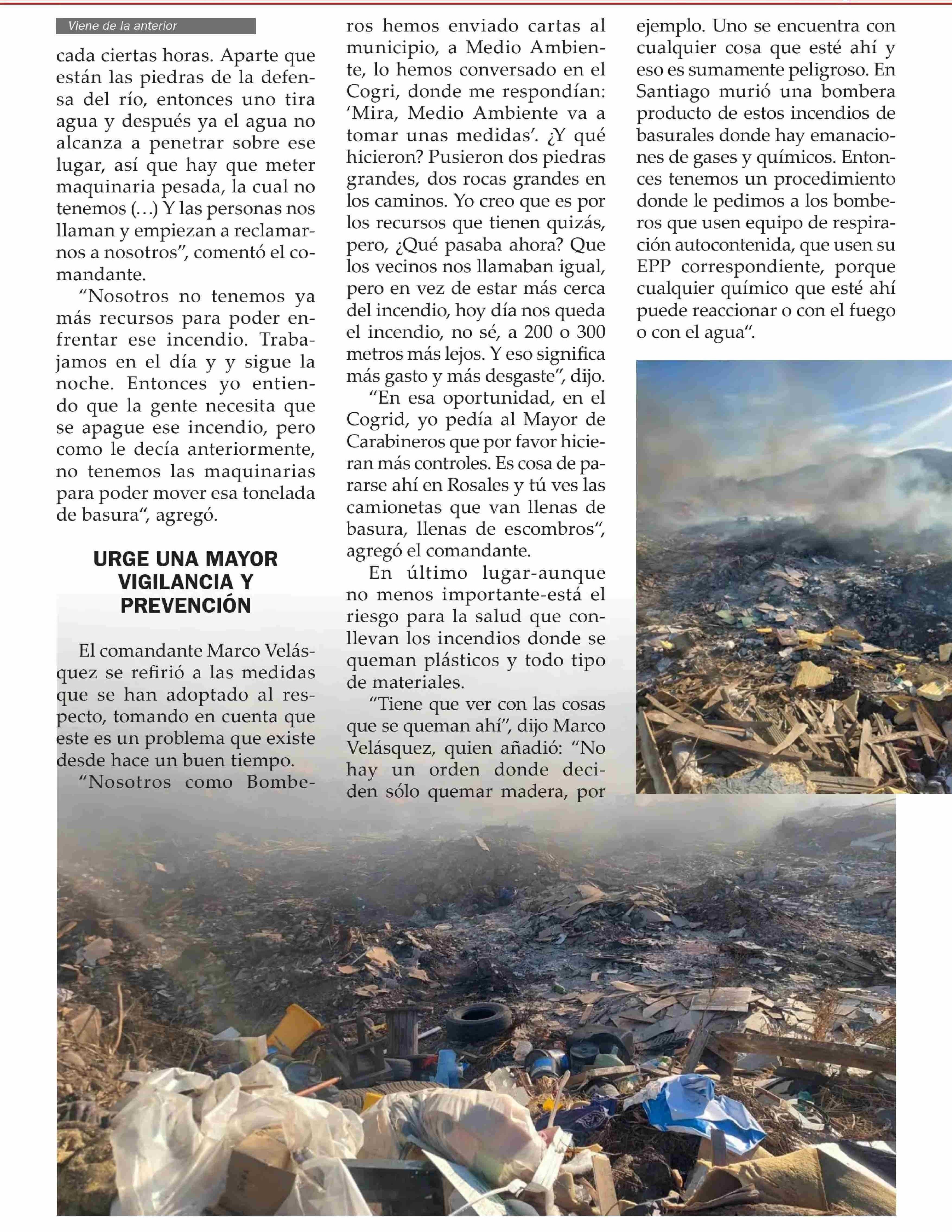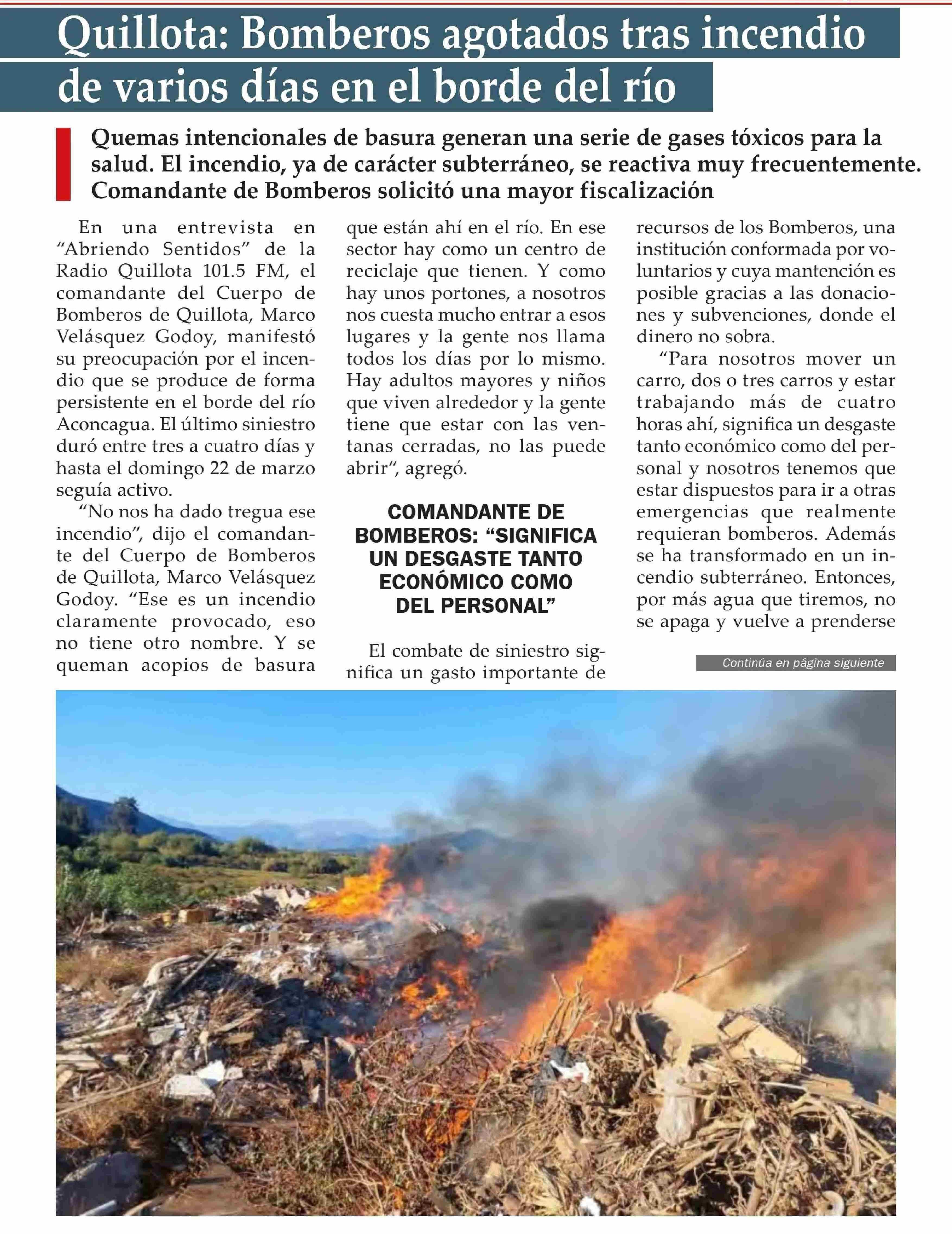 | Título: | Quillota: Bomberos agotados tras incendio de varios días en el borde del río |
