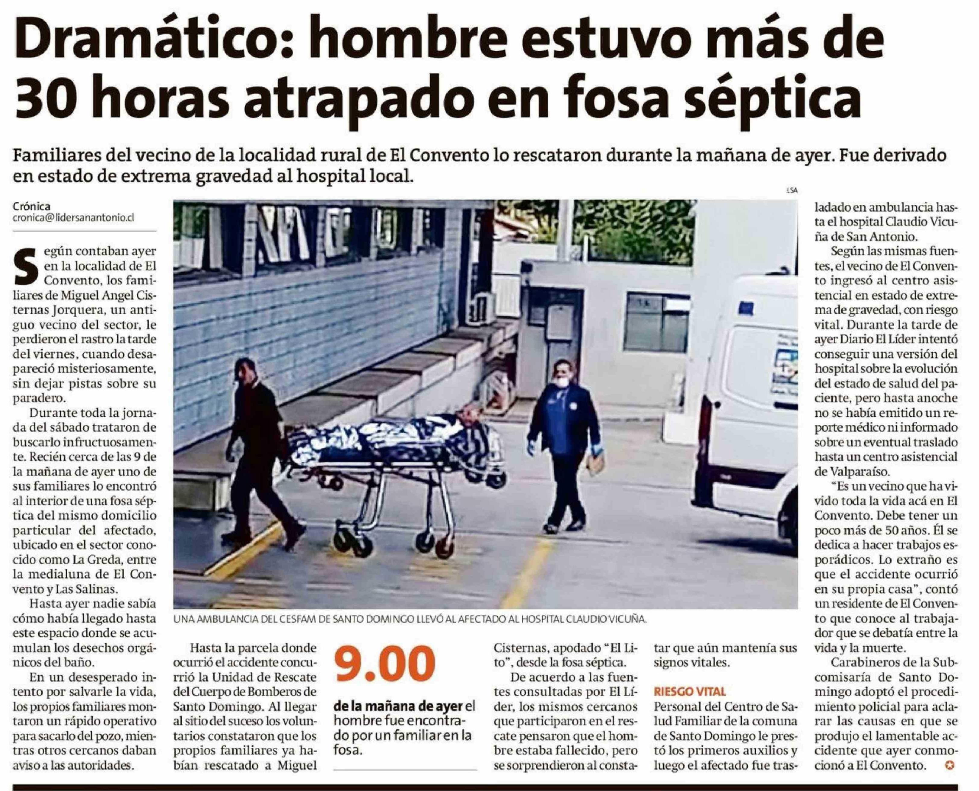 Dramático: hombre estuvo más de 30 horas atrapado en fosa séptica 20-04-2026 El Líder |