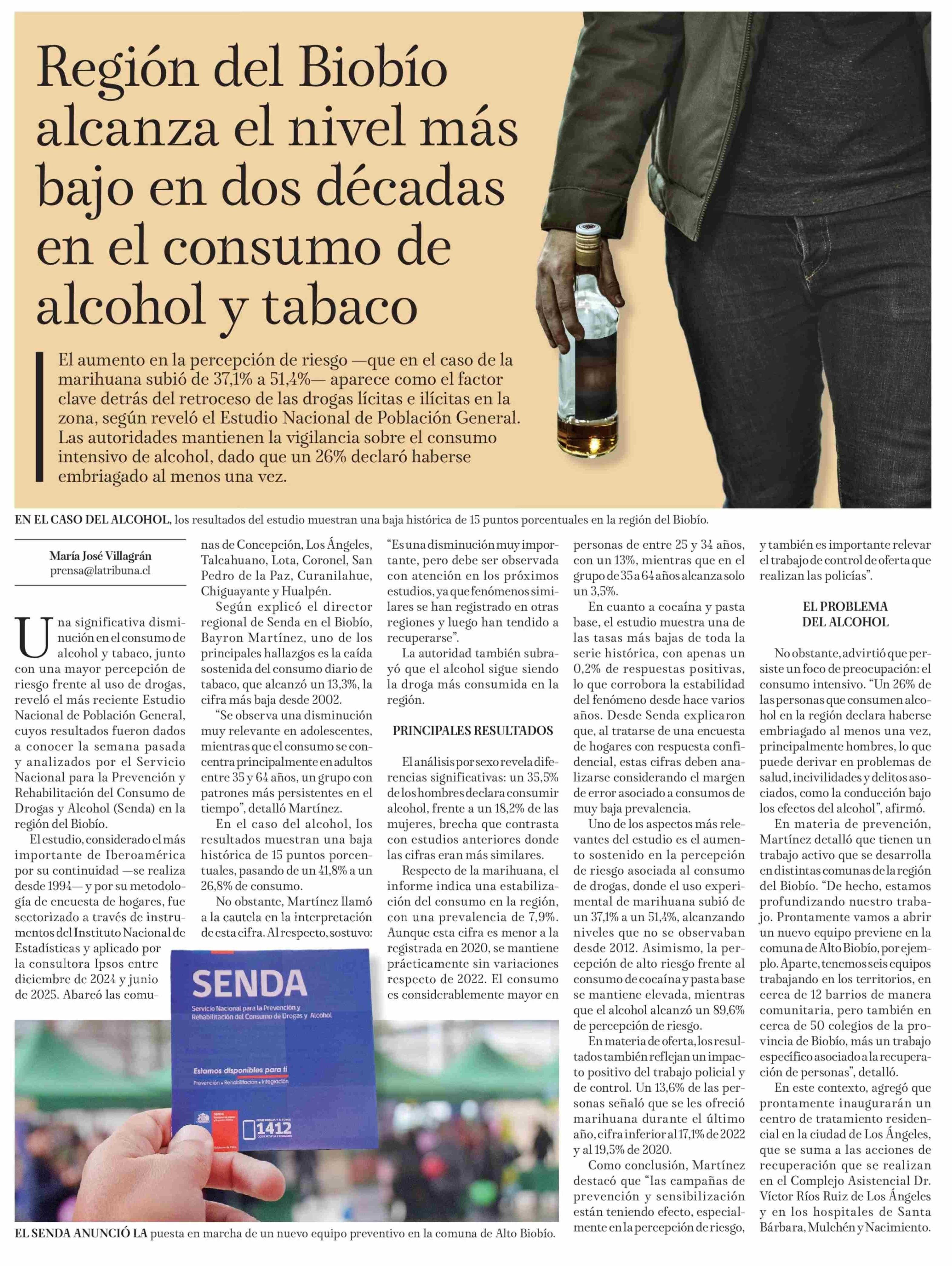 Región del Biobío alcanza el nivel más bajo en dos décadas en el consumo de alcohol y tabaco 06-01-2026 La Tribuna |