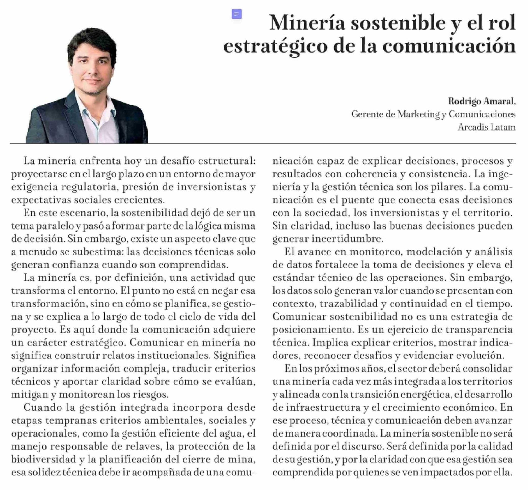 Columnas de Opinión: Minería sostenible y el rol estratégico de la comunicación