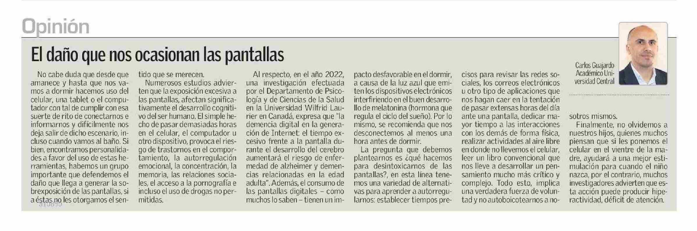 | Título: | COLUMNAS DE OPINIÓN: El daño que nos ocasionan las pantallas |
