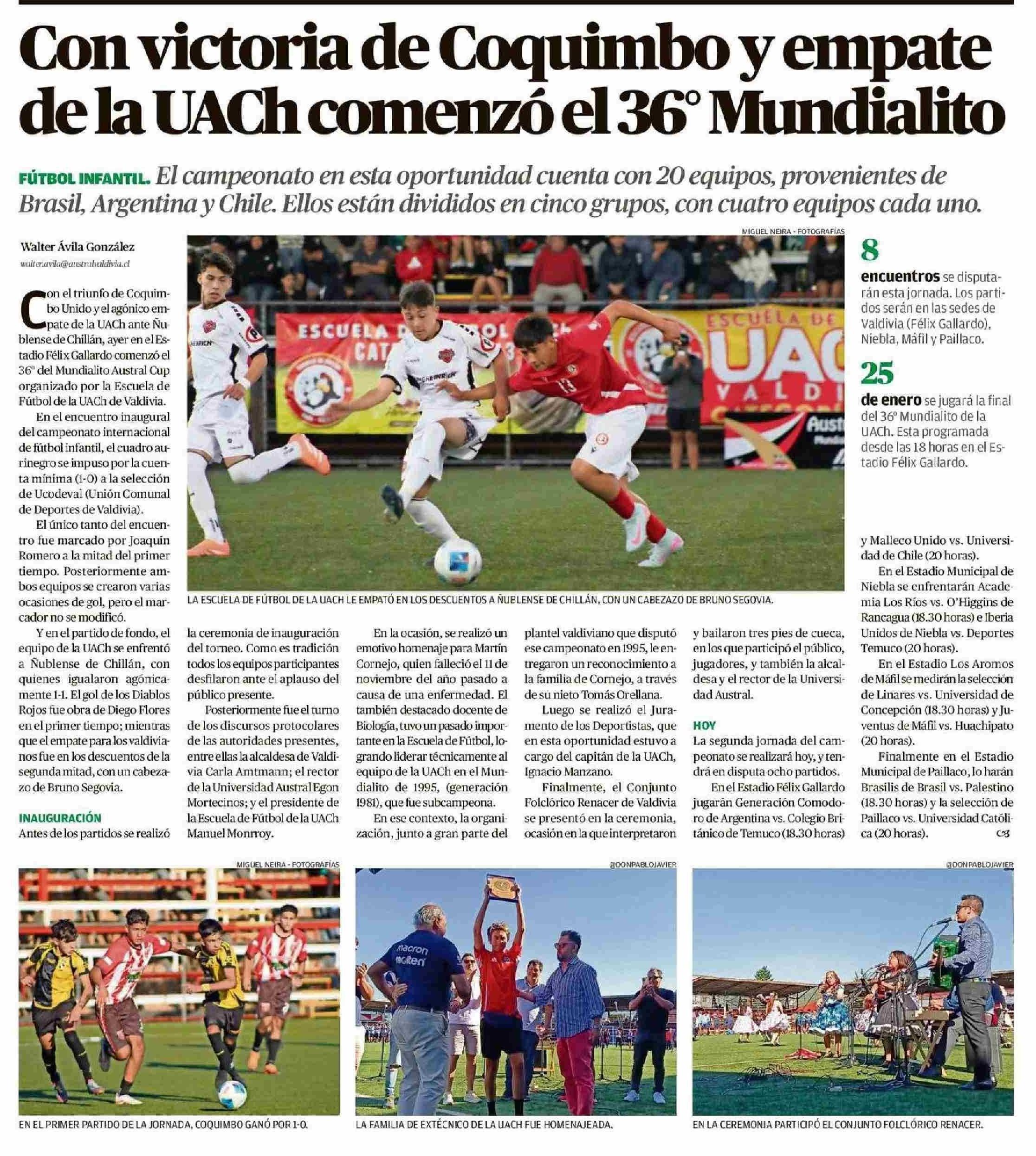 Con victoria de Coquimbo y empate de la UACh comenzó el 36° Mundialito 18-01-2026 Diario Austral Región de Los Ríos |