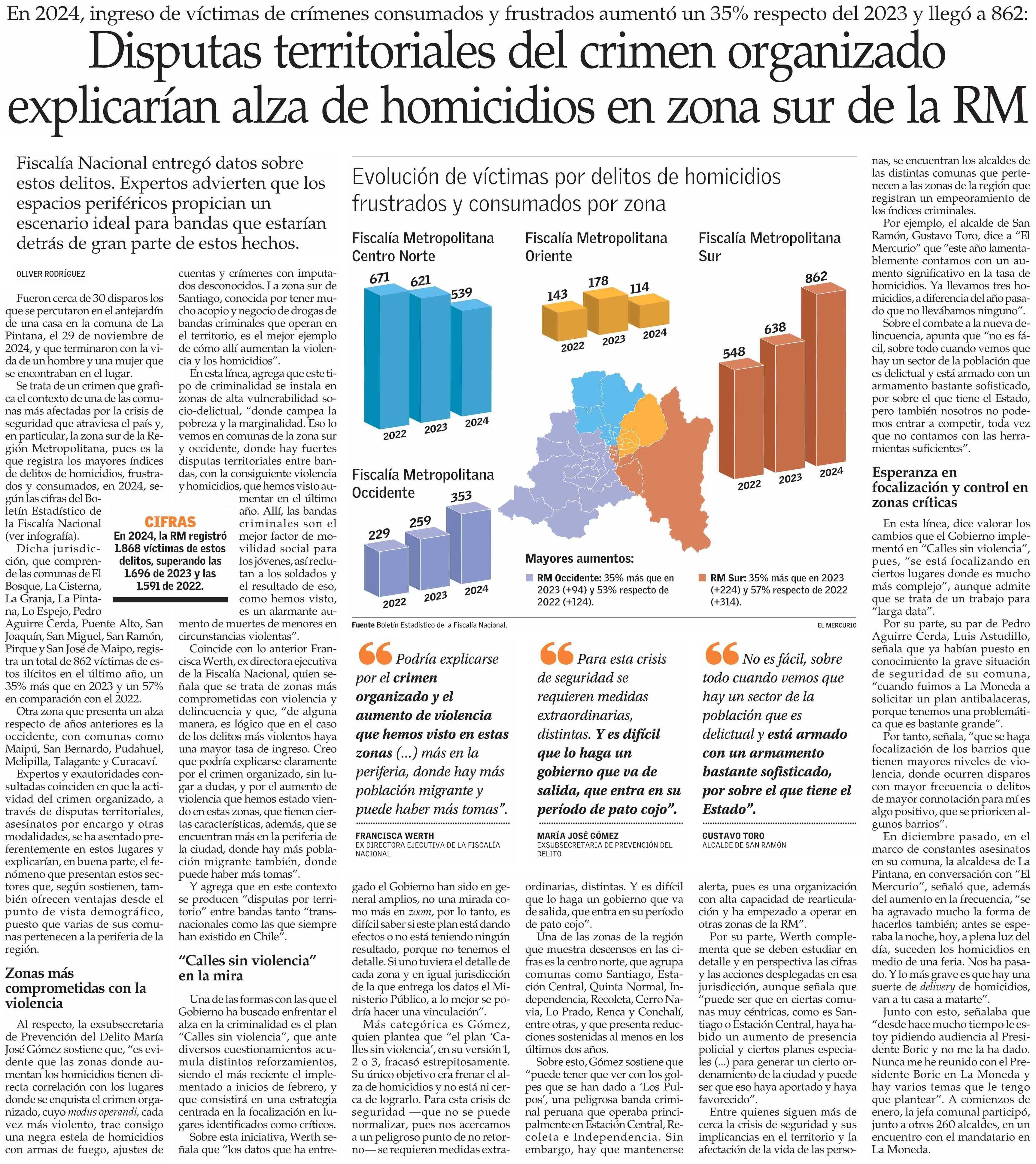 Disputas territoriales del crimen organizado explicarían alza de homicidios en zona sur de la RM 17-02-2025 El Mercurio |