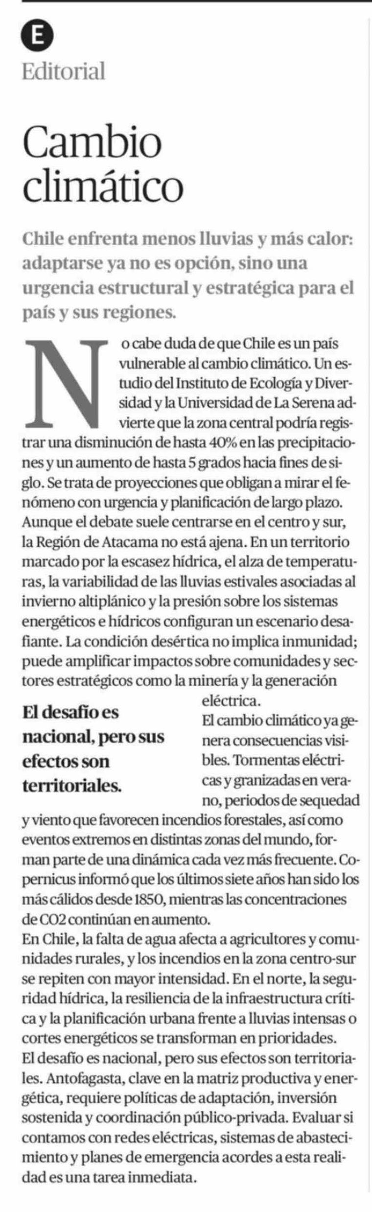 Editorial: Cambio climático 16-02-2026 El Diario de Atacama |