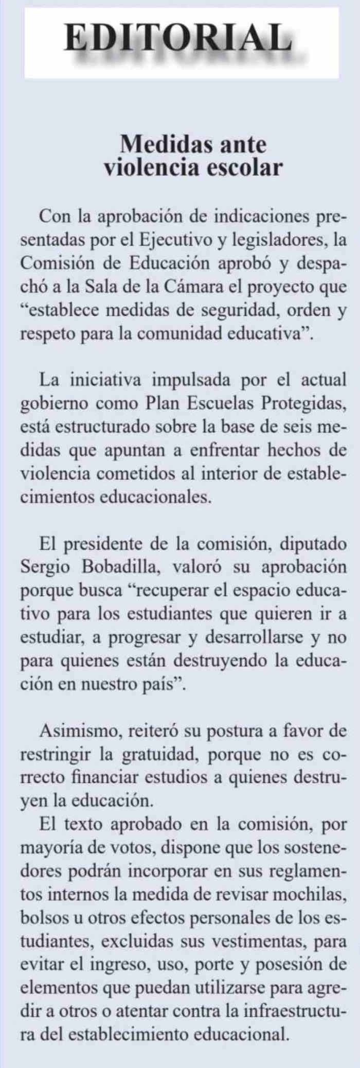 Editorial: Medidas ante violencia escolar 18-04-2026 El Heraldo |