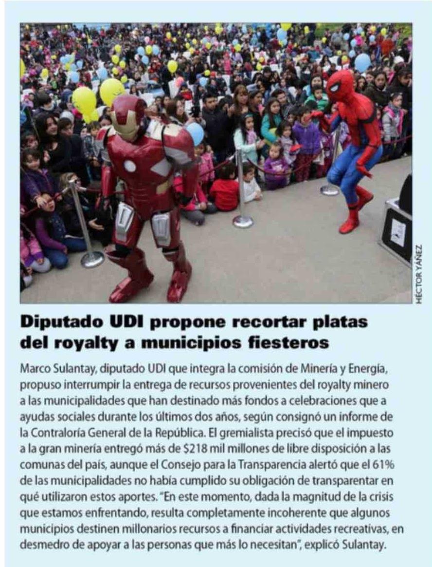 Título: Diputado UDI propone recortar platas del royalty a municipios fiesteros
