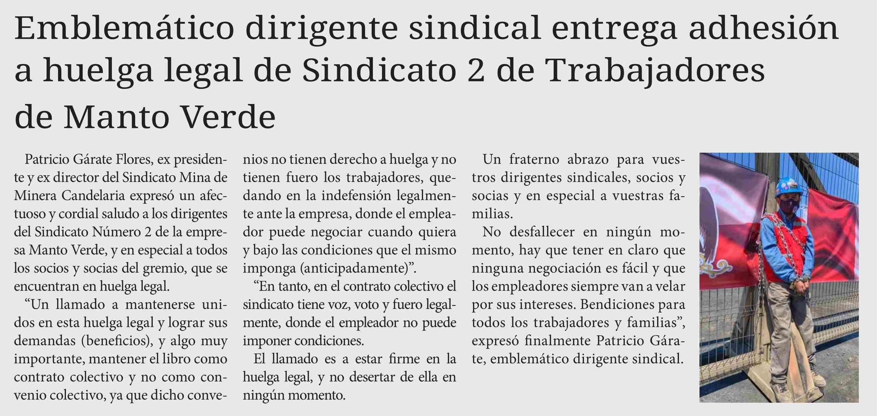 | Título: | Emblemático dirigente sindical entrega adhesión a huelga legal de Sindicato 2 de Trabajadores de Manto Verde |