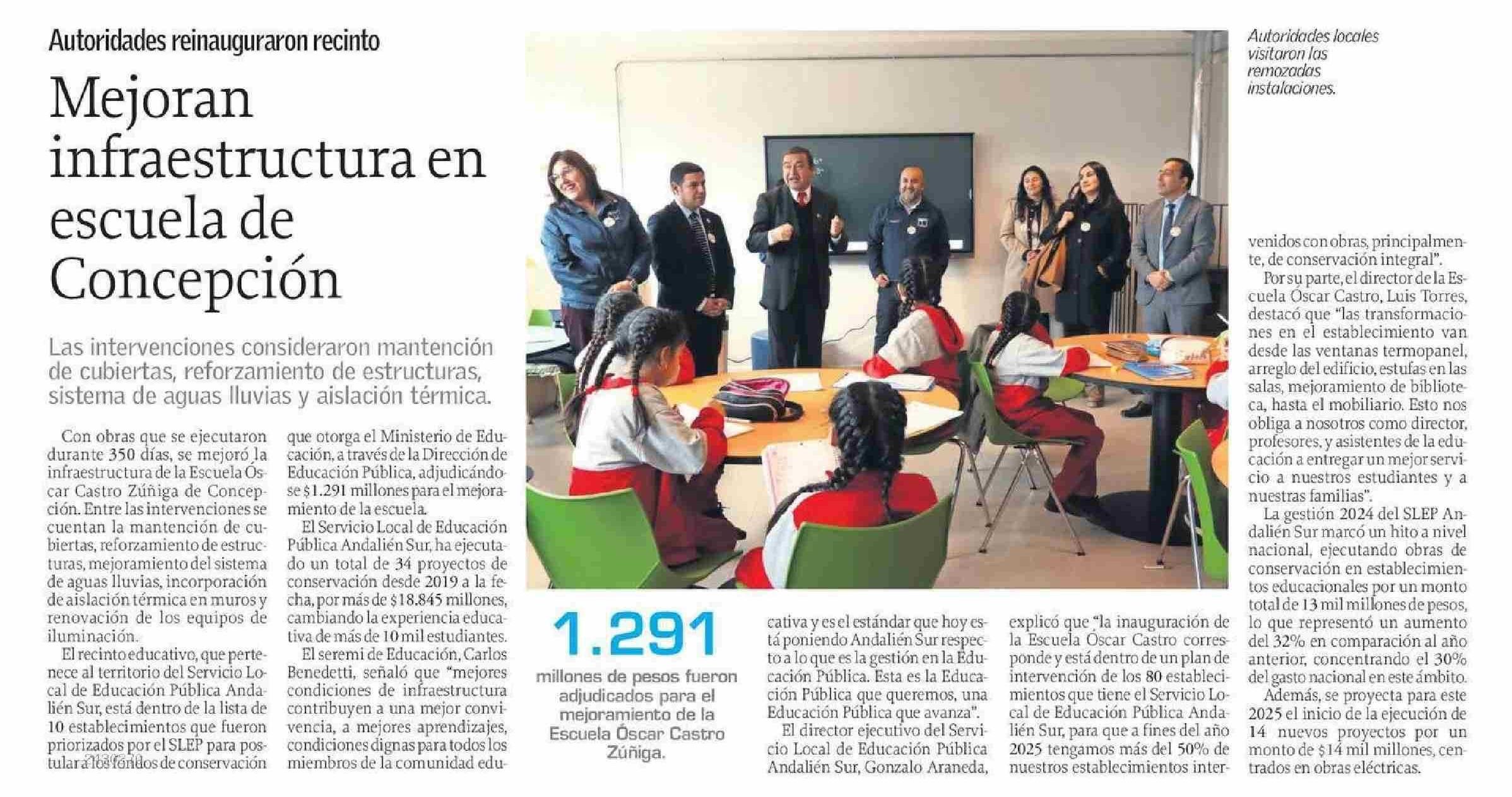 Mejoran infraestructura en escuela de Concepción 12-06-2025 El Sur |