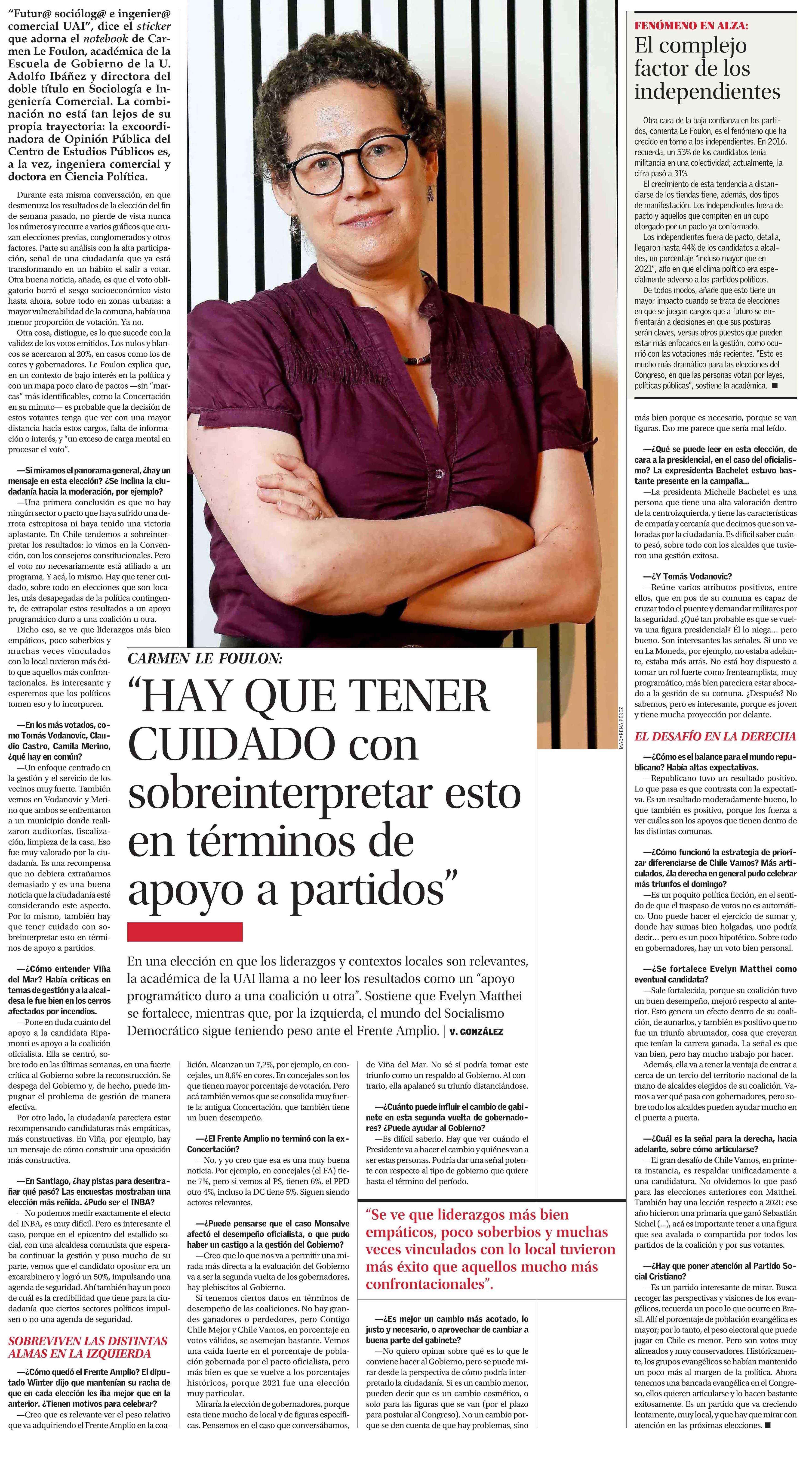 “HAY QUE TENER CUIDADO con sobreinterpretar esto en términos de apoyo a partidos” 03-11-2024 El Mercurio |