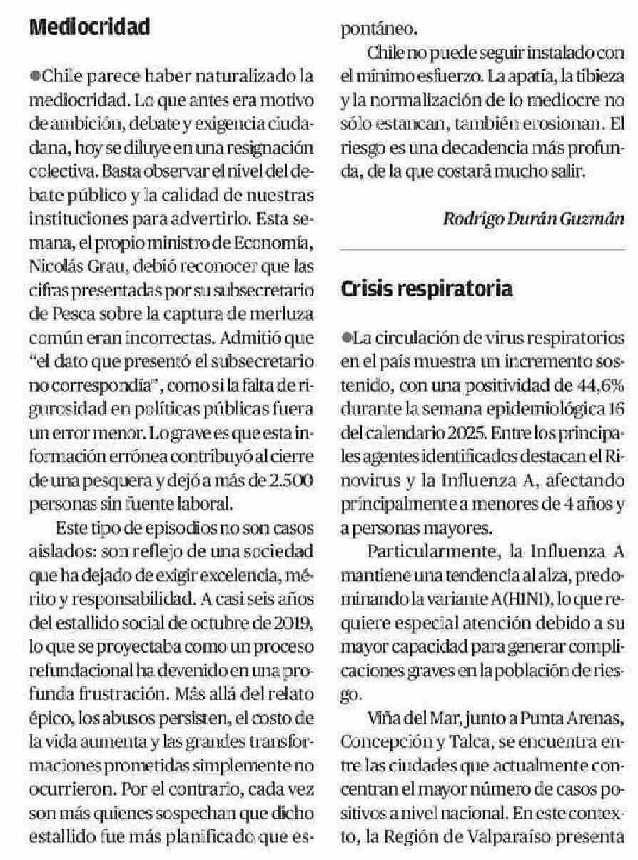 Mediocridad 16-05-2025 El Mercurio de Antofagasta |