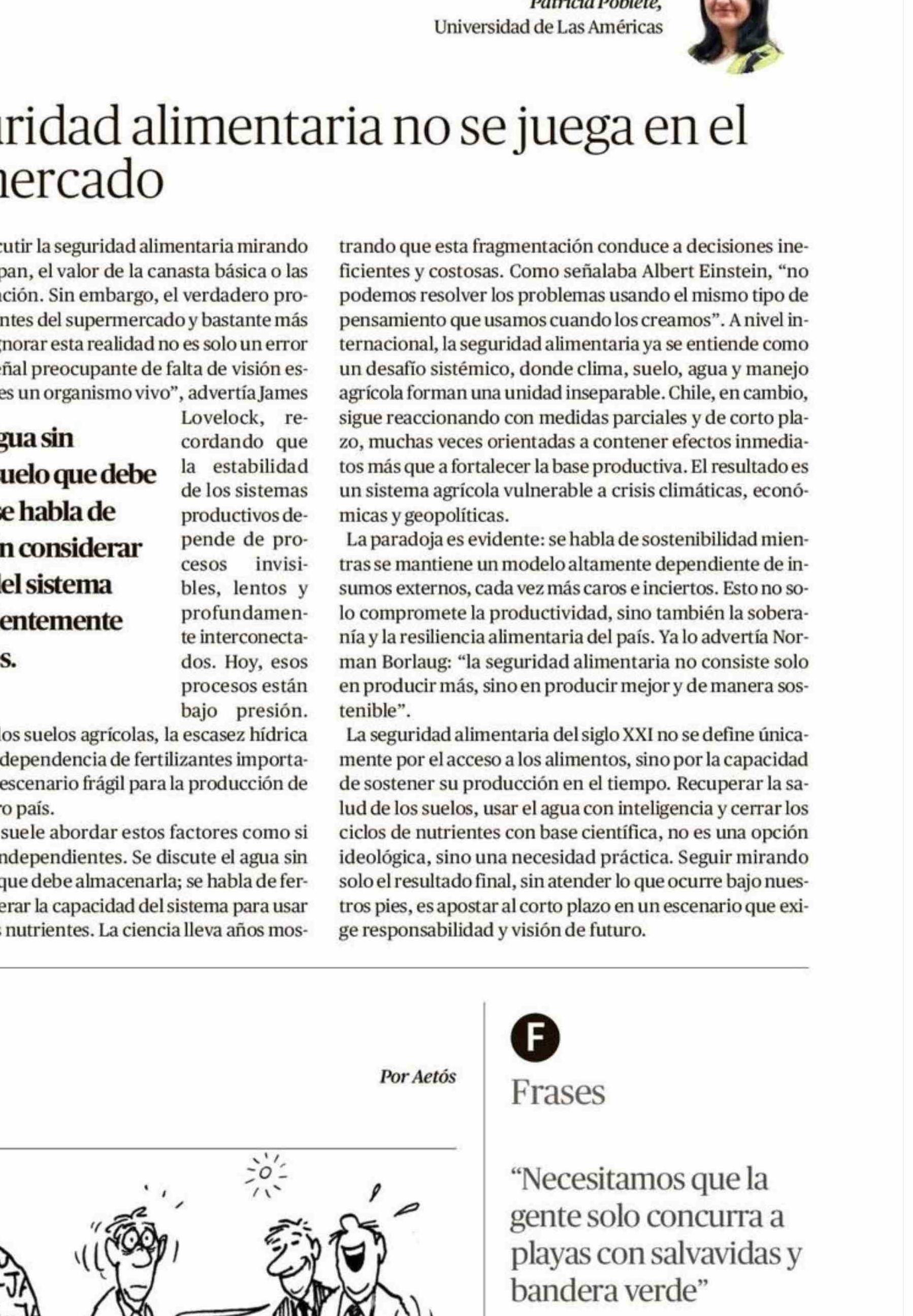 Título: Columnas de Opinión: La seguridad alimentaria no se juega en el supermercado