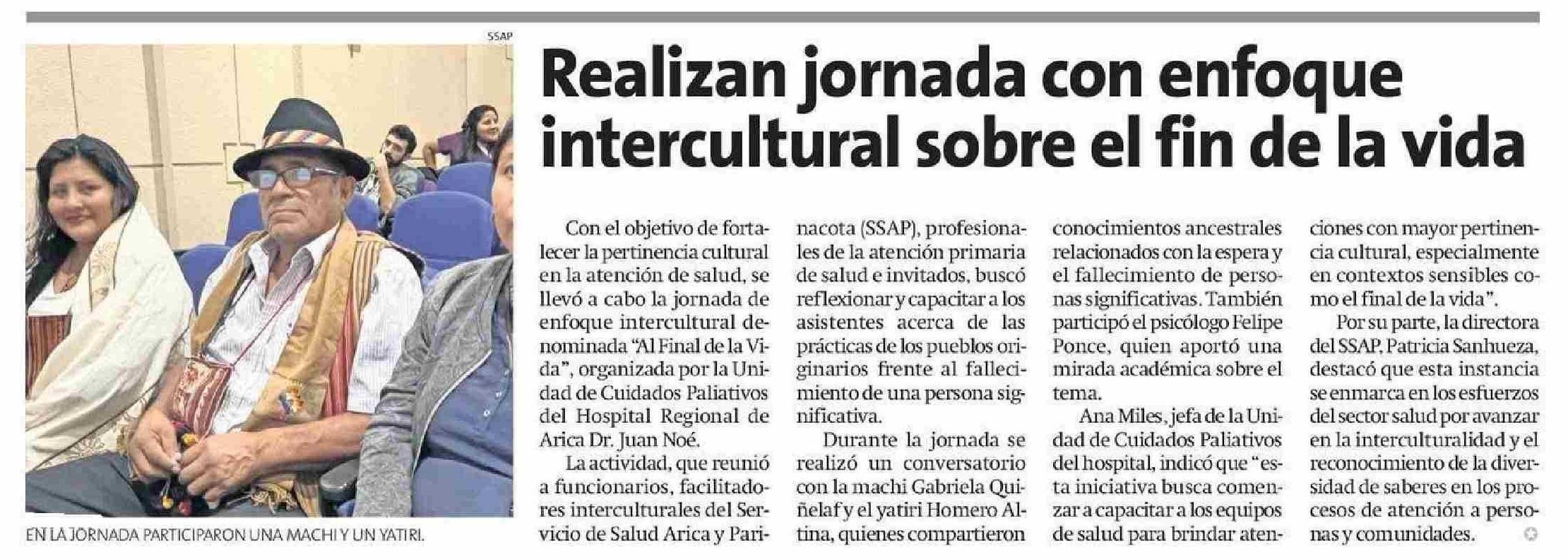 Realizan jornada con enfoque intercultural sobre el fin de la vida 19-05-2025 La Estrella de Arica |