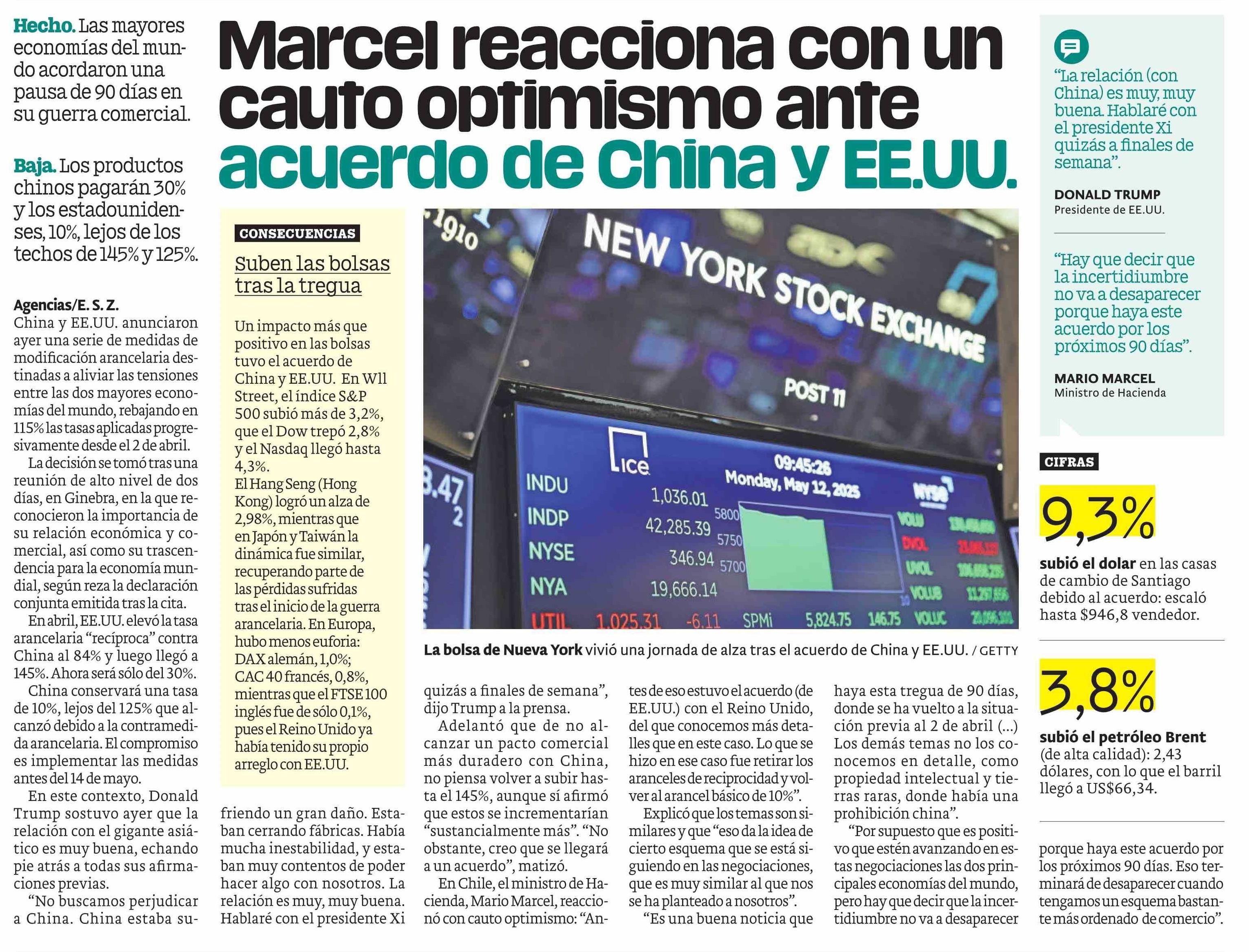 Marcel reacciona con un cauto optimismo ante acuerdo de China y EE.UU. 13-05-2025 Publimetro |