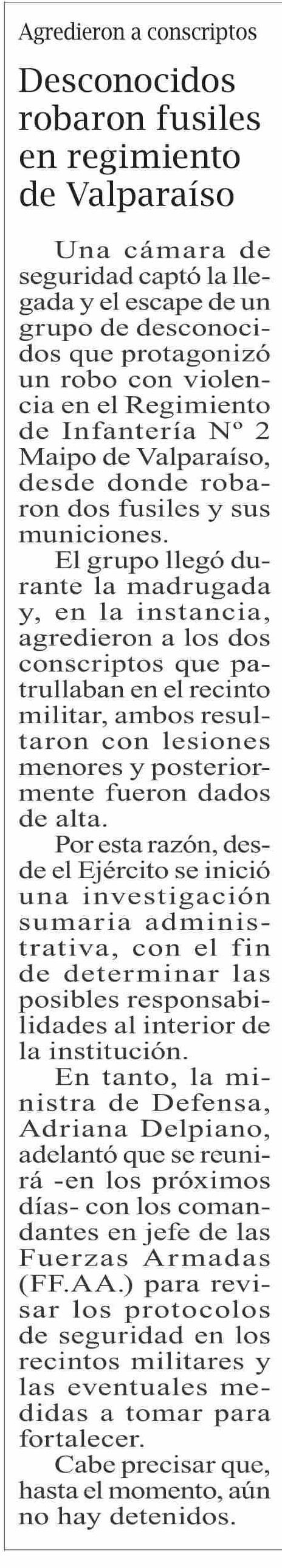 Título: Desconocidos robaron fusiles en regimiento de Valparaíso