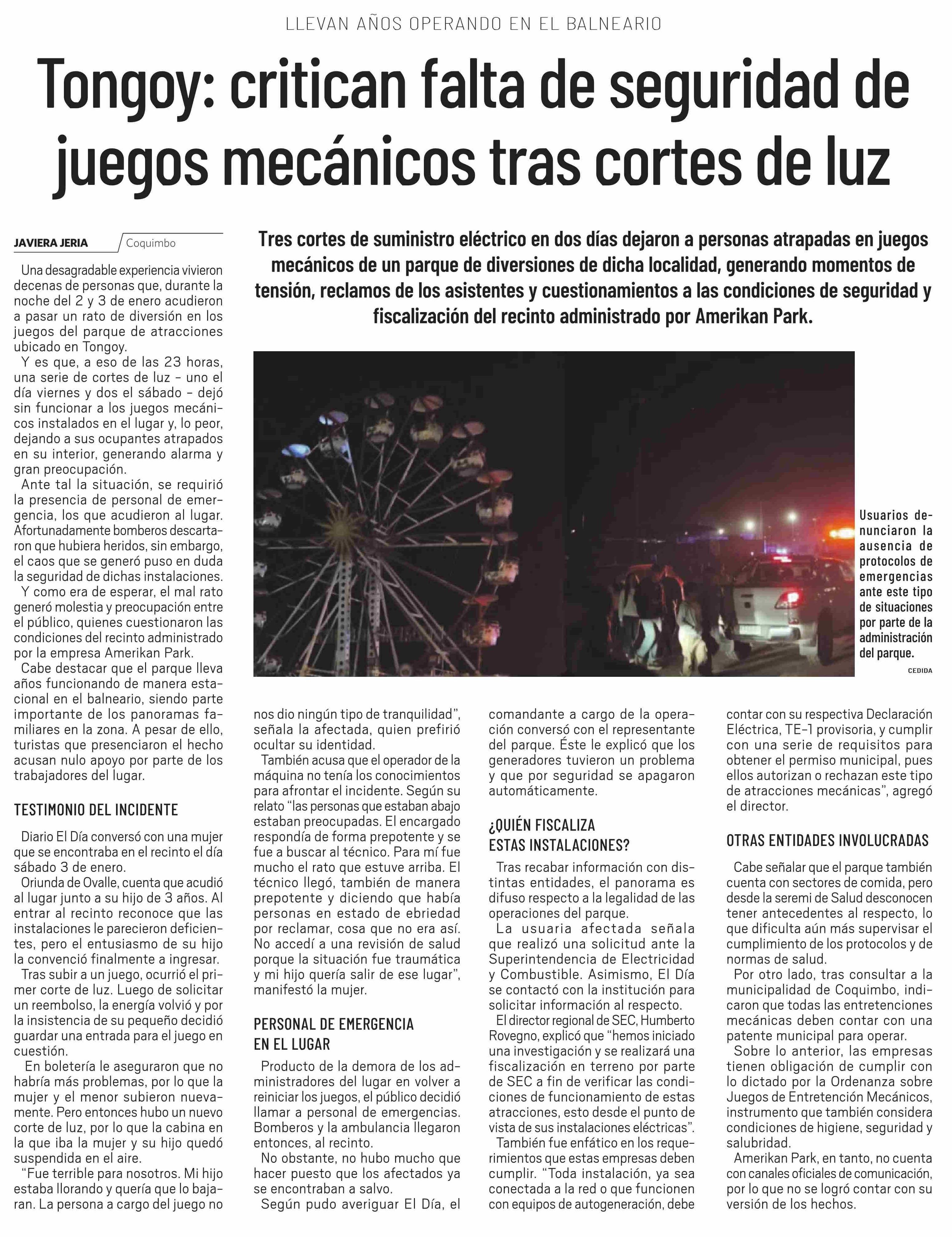 Título: Tongoy: critican falta de seguridad de juegos mecánicos tras cortes de luz
