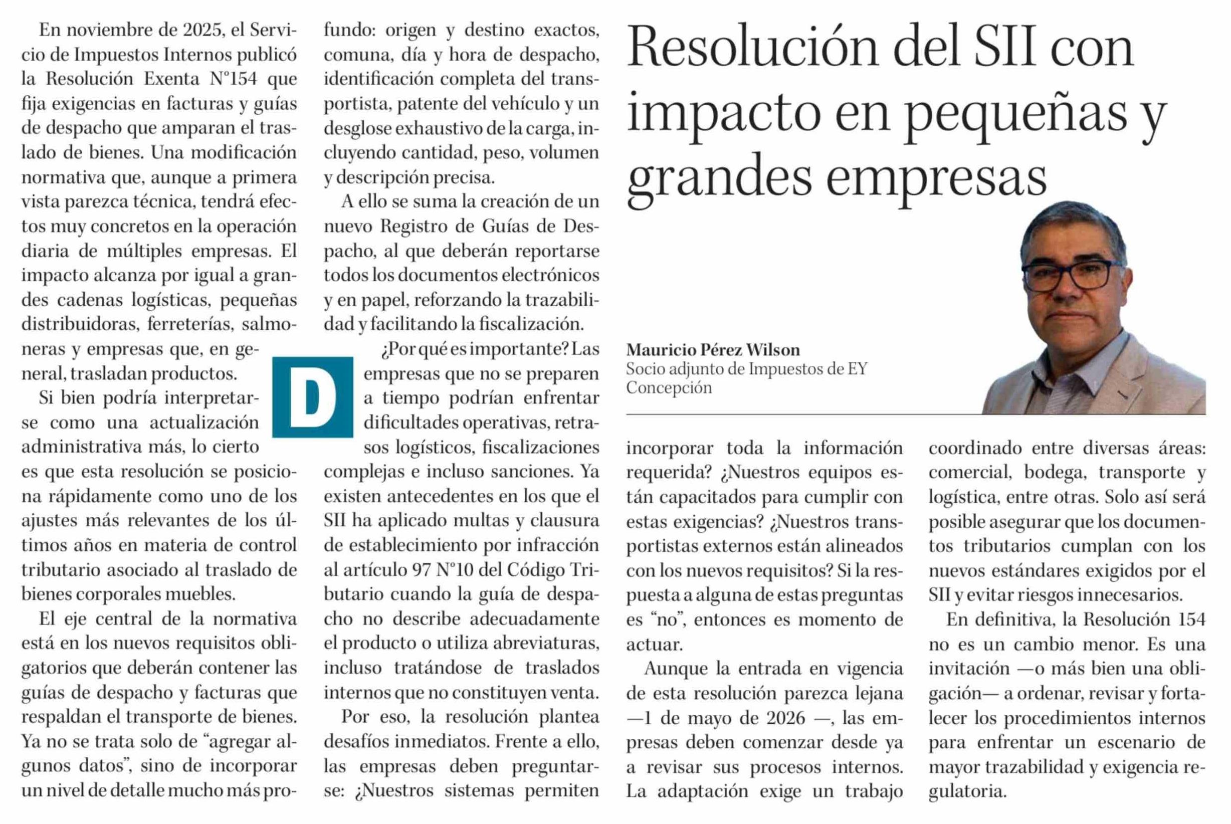 Columnas de Opinión: Resolución del SII con impacto en pequeñas y grandes empresas 03-03-2026 Diario Concepción |