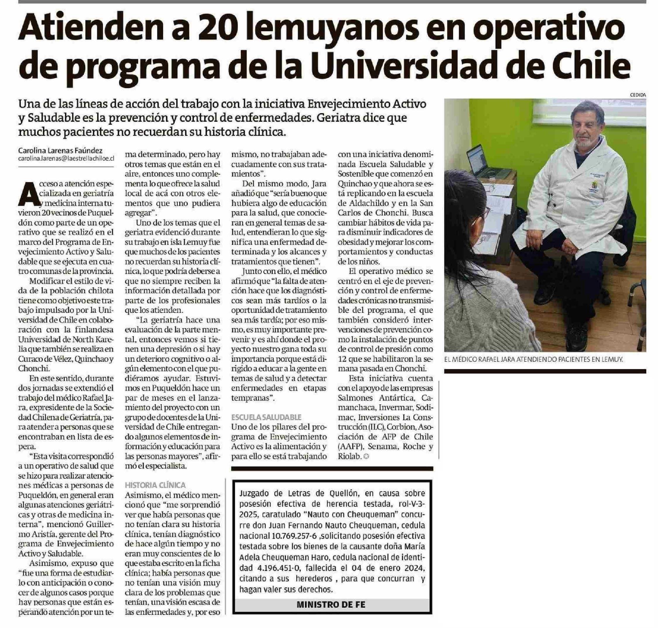 Atienden a 20 lemuyanos en operativo de programa de la Universidad de Chile 02-06-2025 La Estrella de Chiloé |
