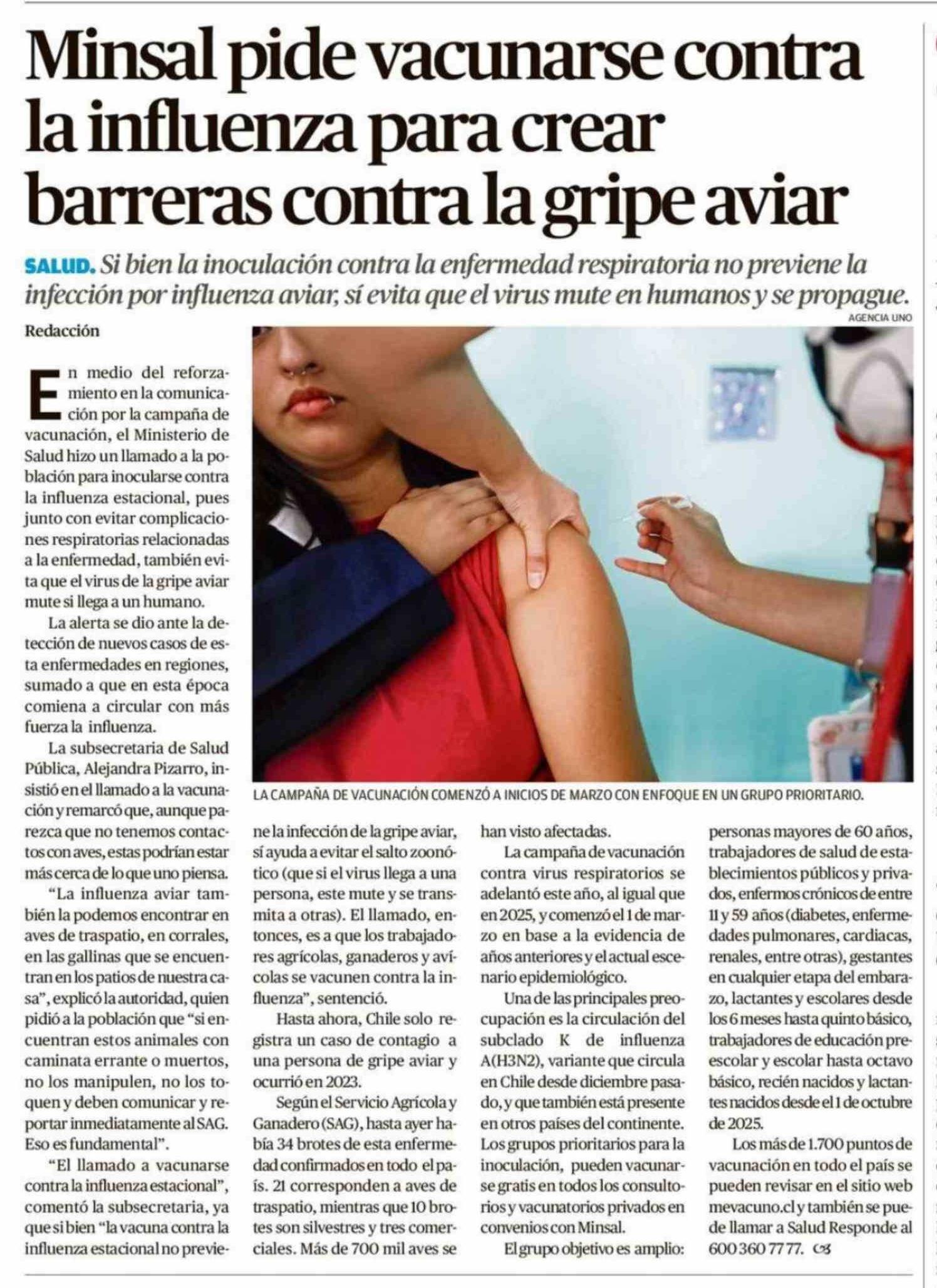 Título: Minsal pide vacunarse contra la influenza para crear barreras contra la gripe aviar