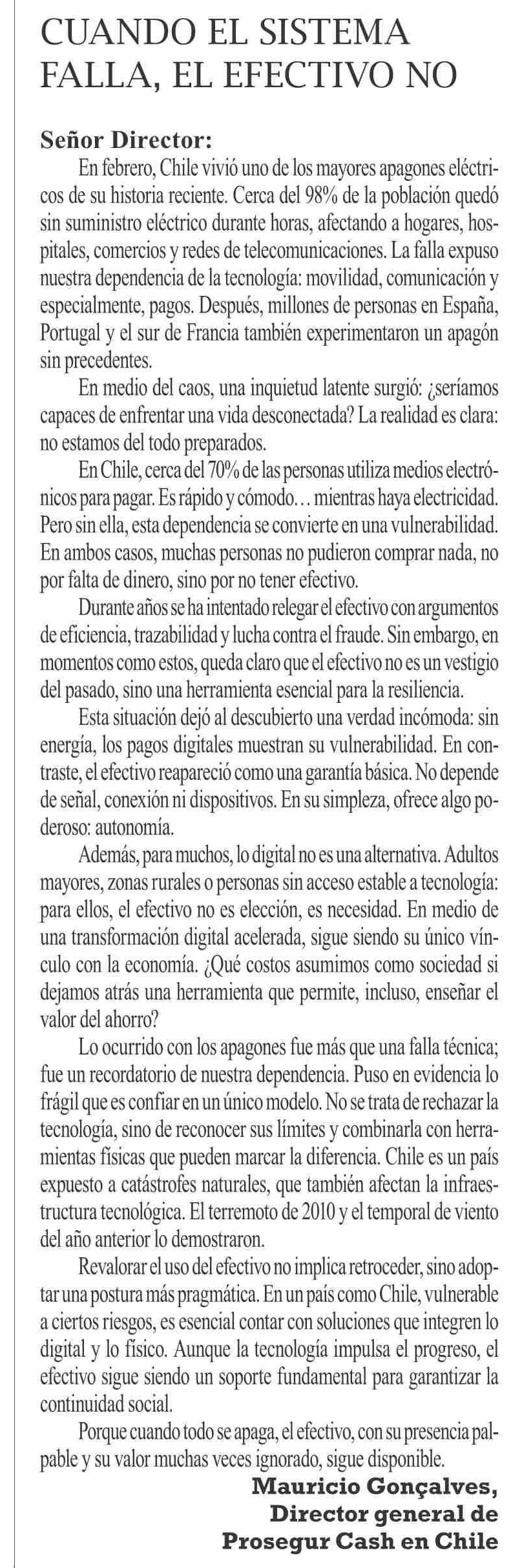| Título: | CARTAS: CUANDO EL SISTEMA FALLA, EL EFECTIVO NO |