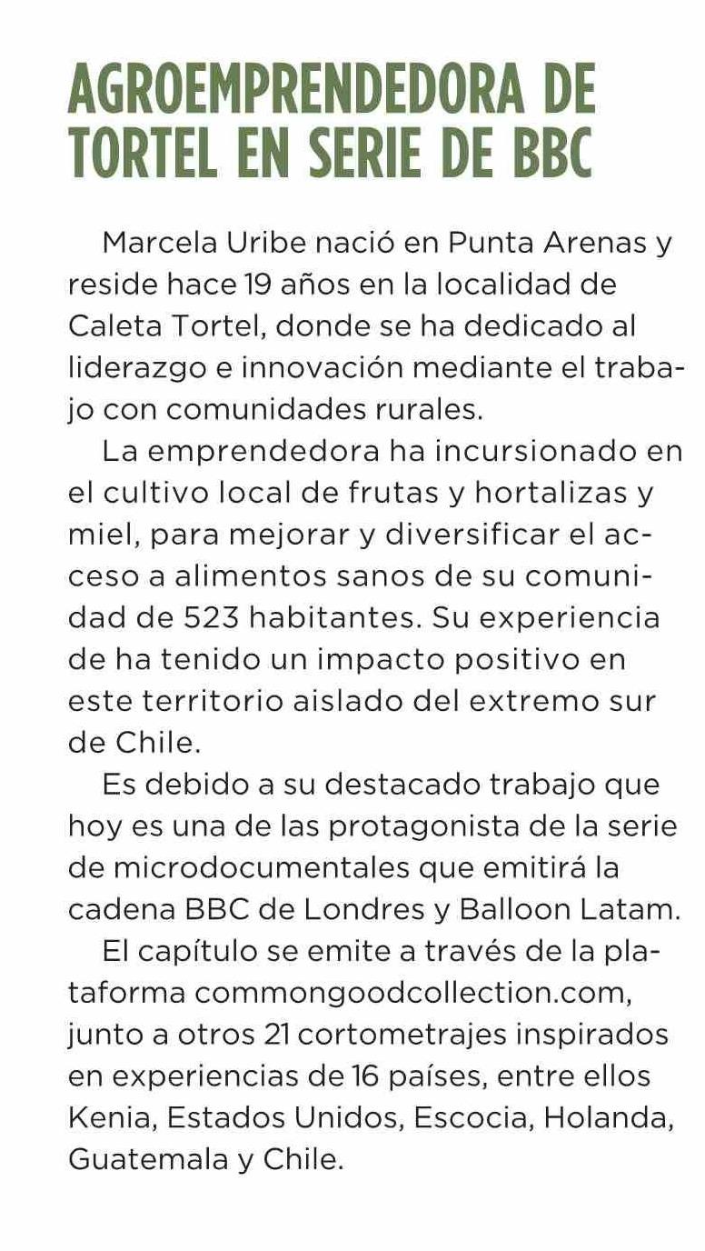 AGROEMPRENDEDORA DE TORTEL EN SERIE DE BBC 02-06-2025 El Mercurio |