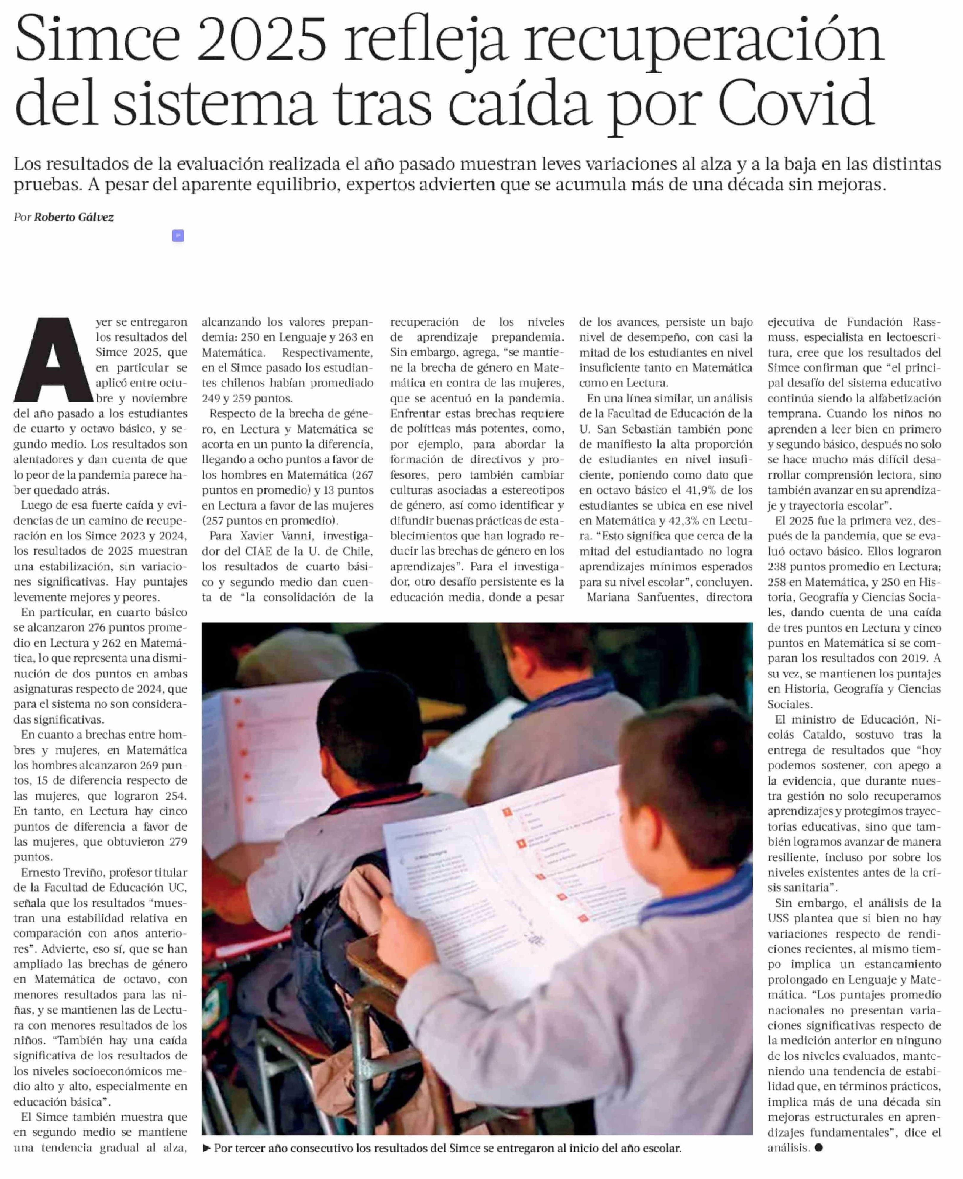 Título: Simce 2025 refleja recuperación del sistema tras caída por Covid