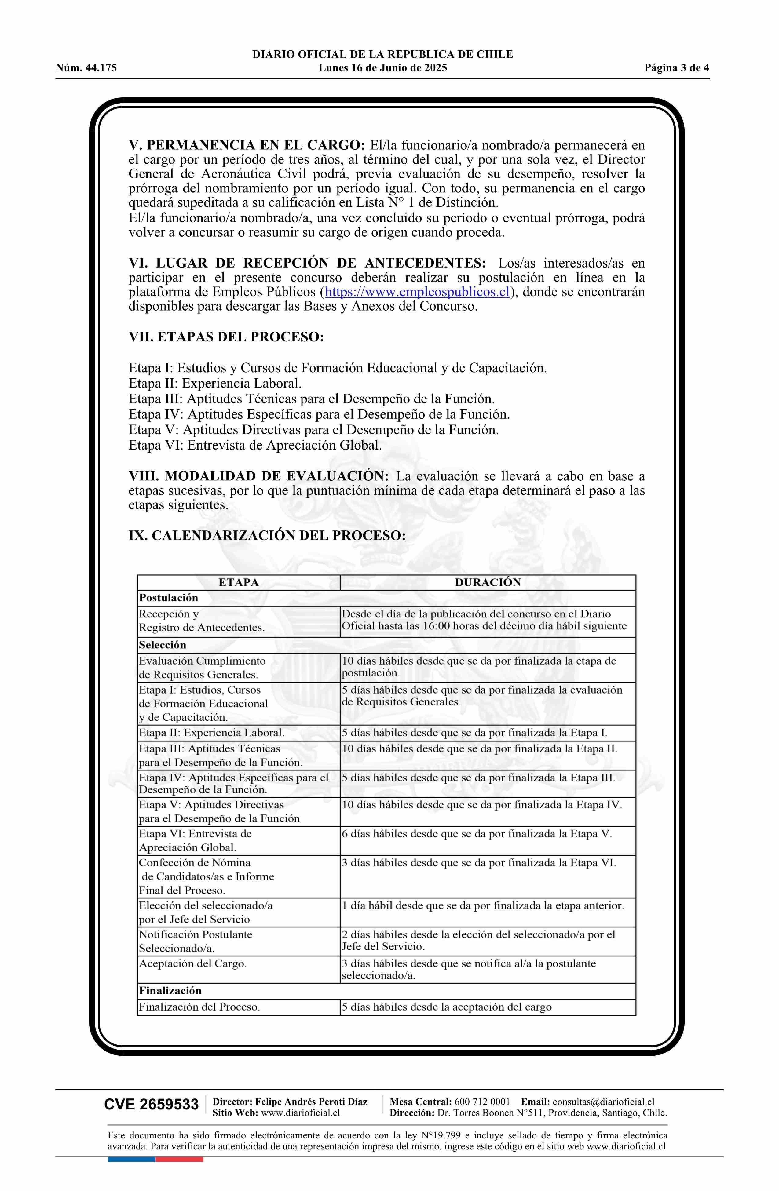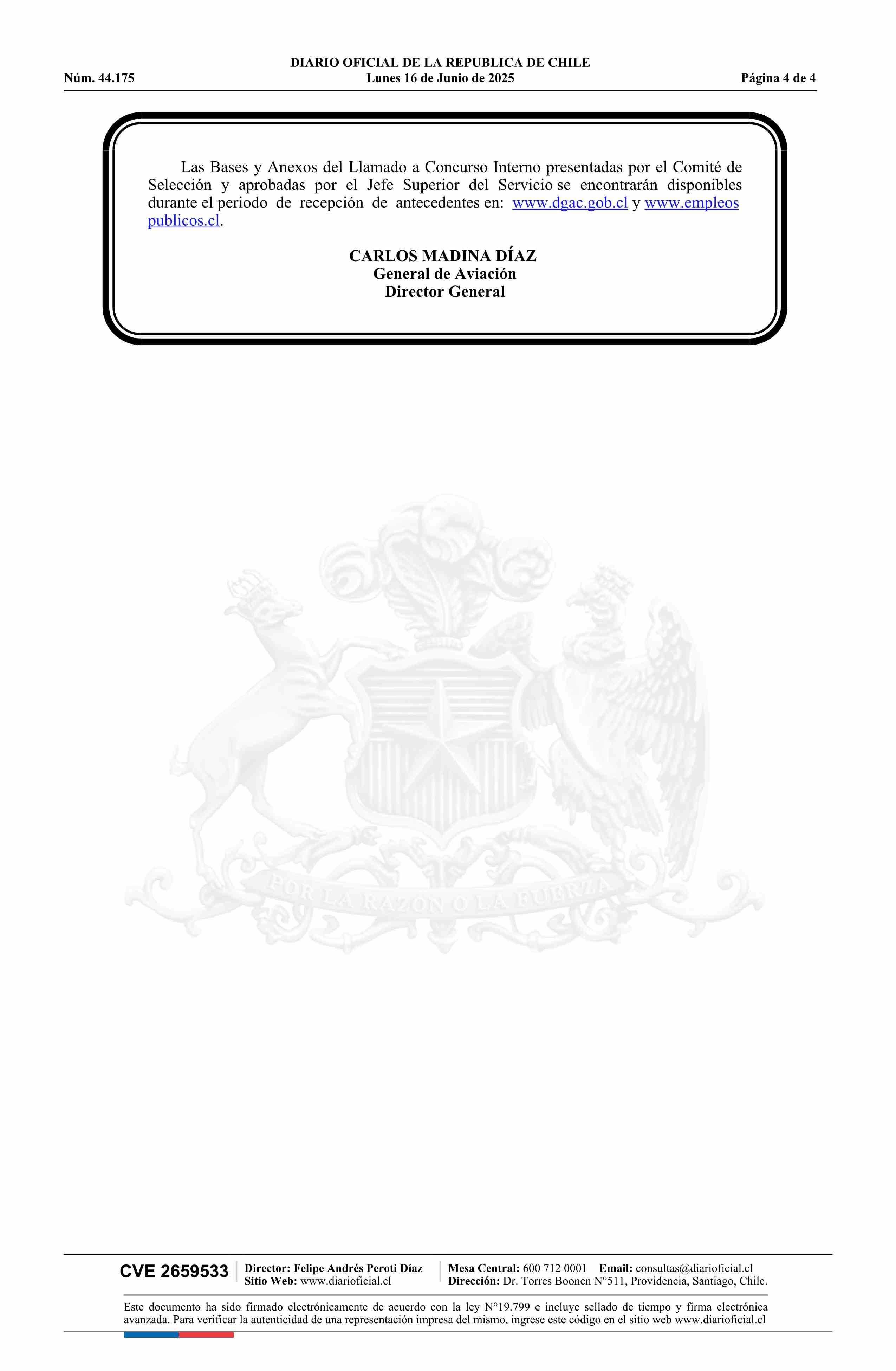 AVISO LICITACIONES: Llama a concurso interno de la Administración Pública, para proveer cargo de tercer nivel jerárquico que indica 16-06-2025 Diario Oficial Edición Electrónica |