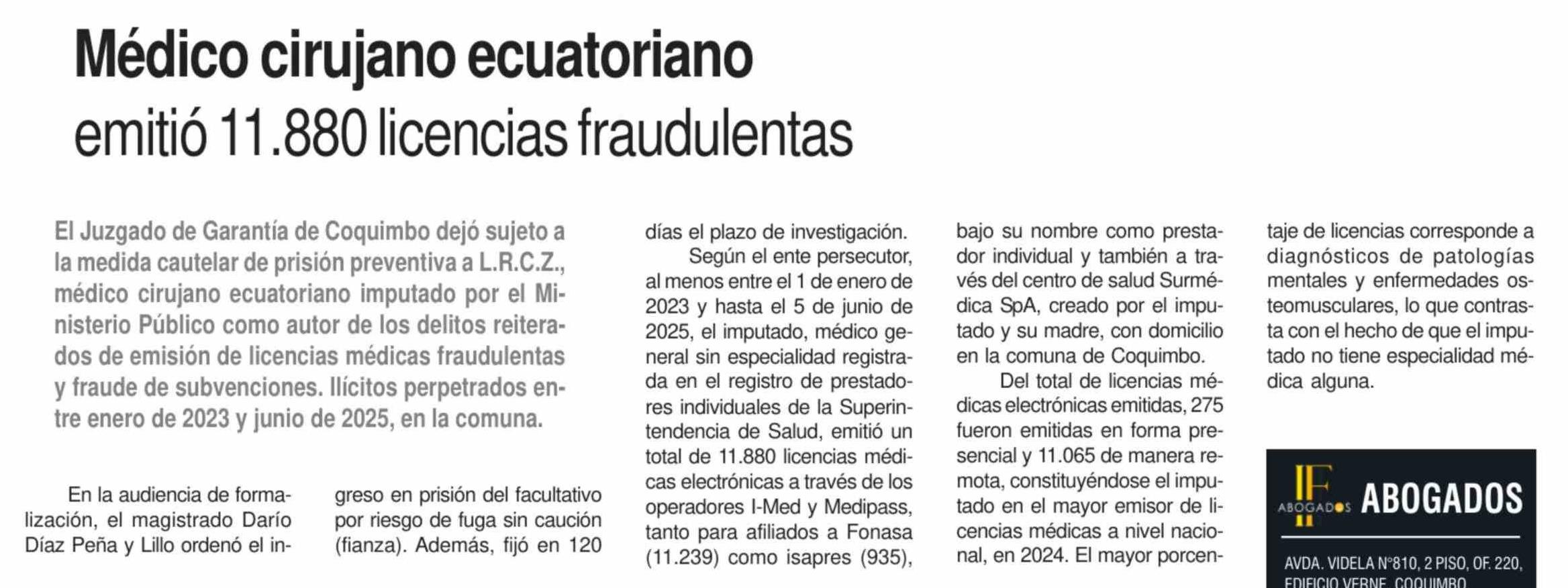 Título: Médico cirujano ecuatoriano emitió 11.880 licencias fraudulentas
