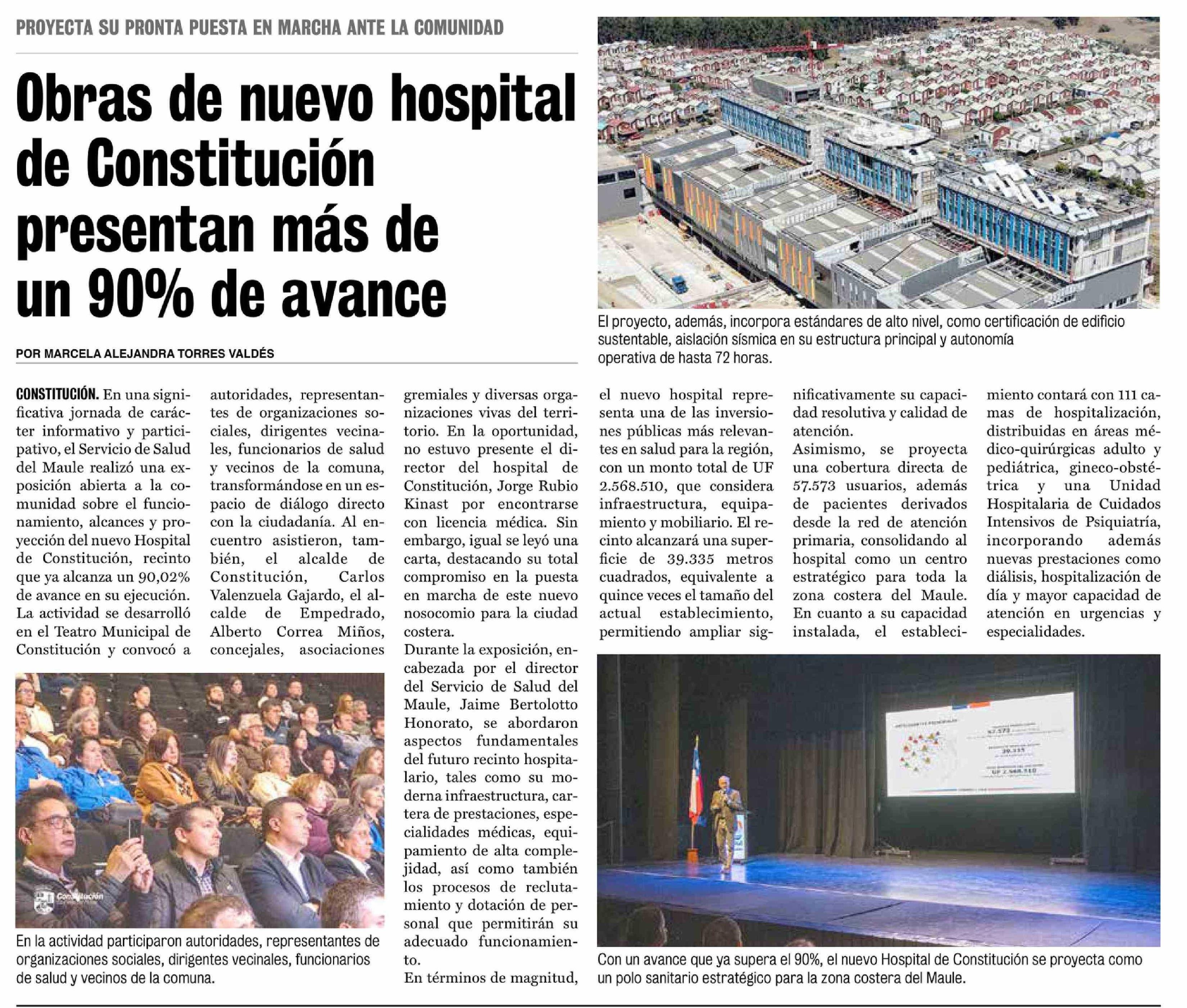 Obras de nuevo hospital de Constitución presentan más de un 90% de avance 23-04-2026 La Prensa de Curicó |