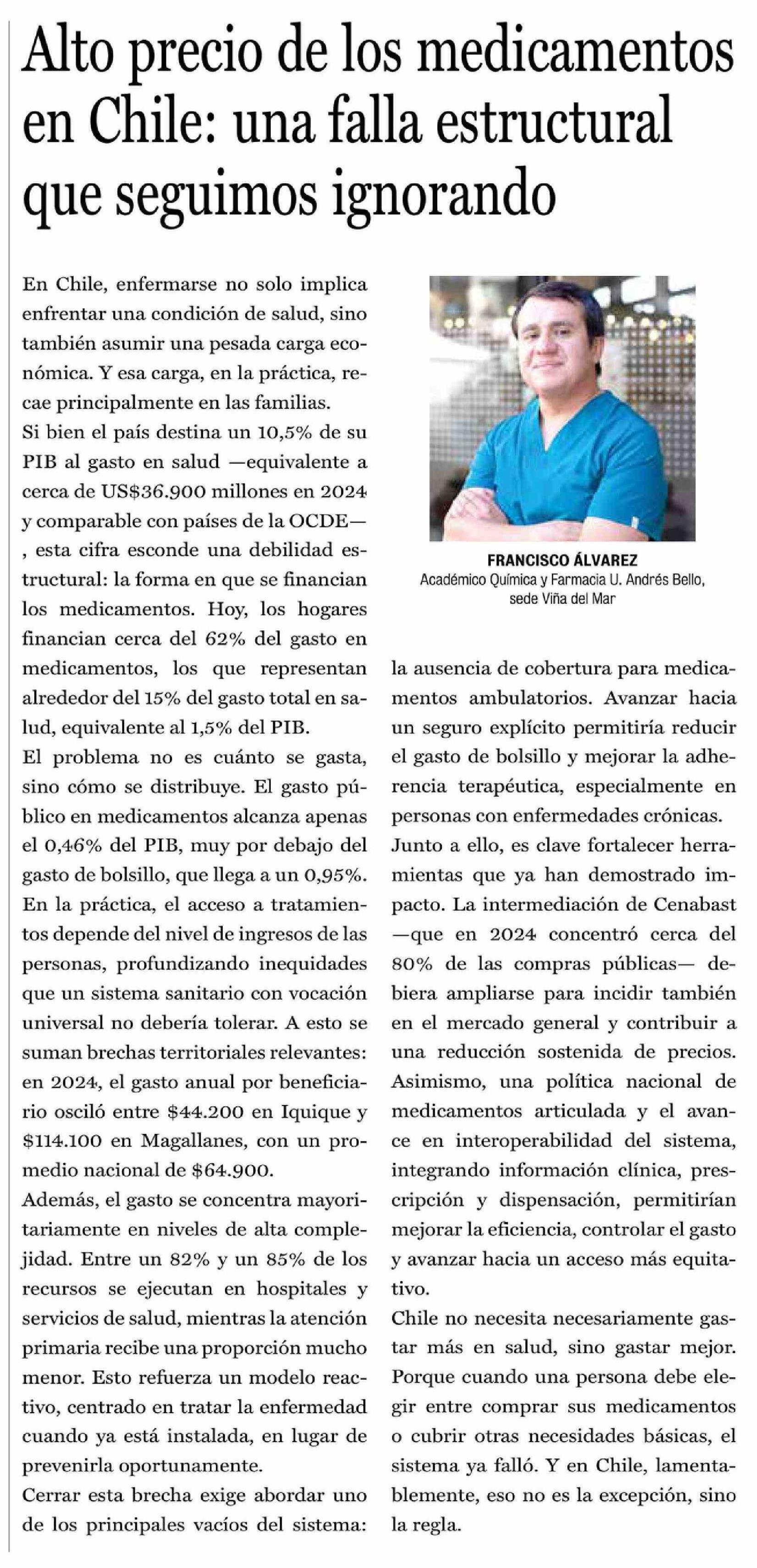 Título: Columnas de Opinión: Alto precio de los medicamentos en Chile: una falla estructural que seguimos ignorando