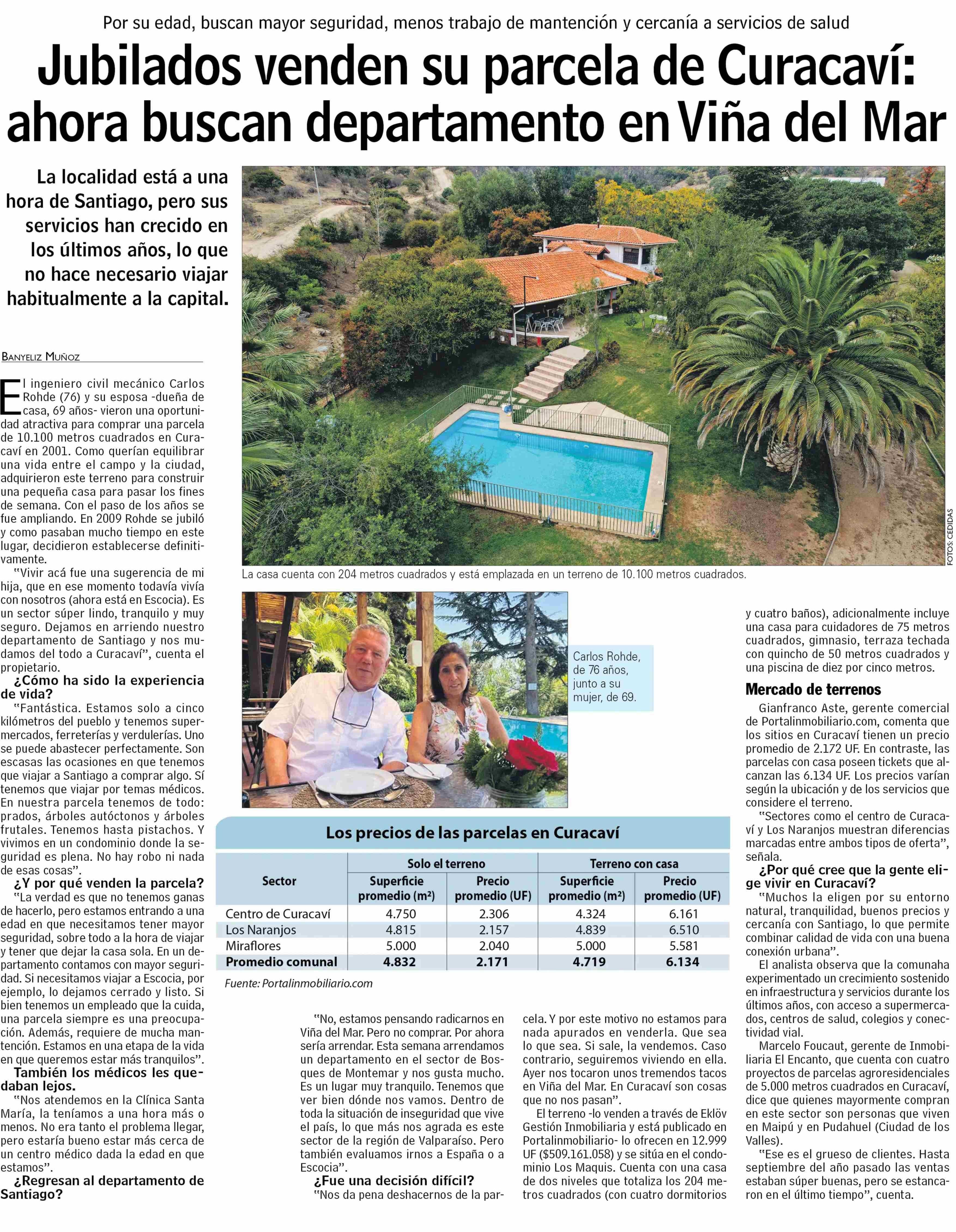 Jubilados venden su parcela de Curacaví: ahora buscan departamento en Viña del Mar 24-05-2025 Las Últimas Noticias |