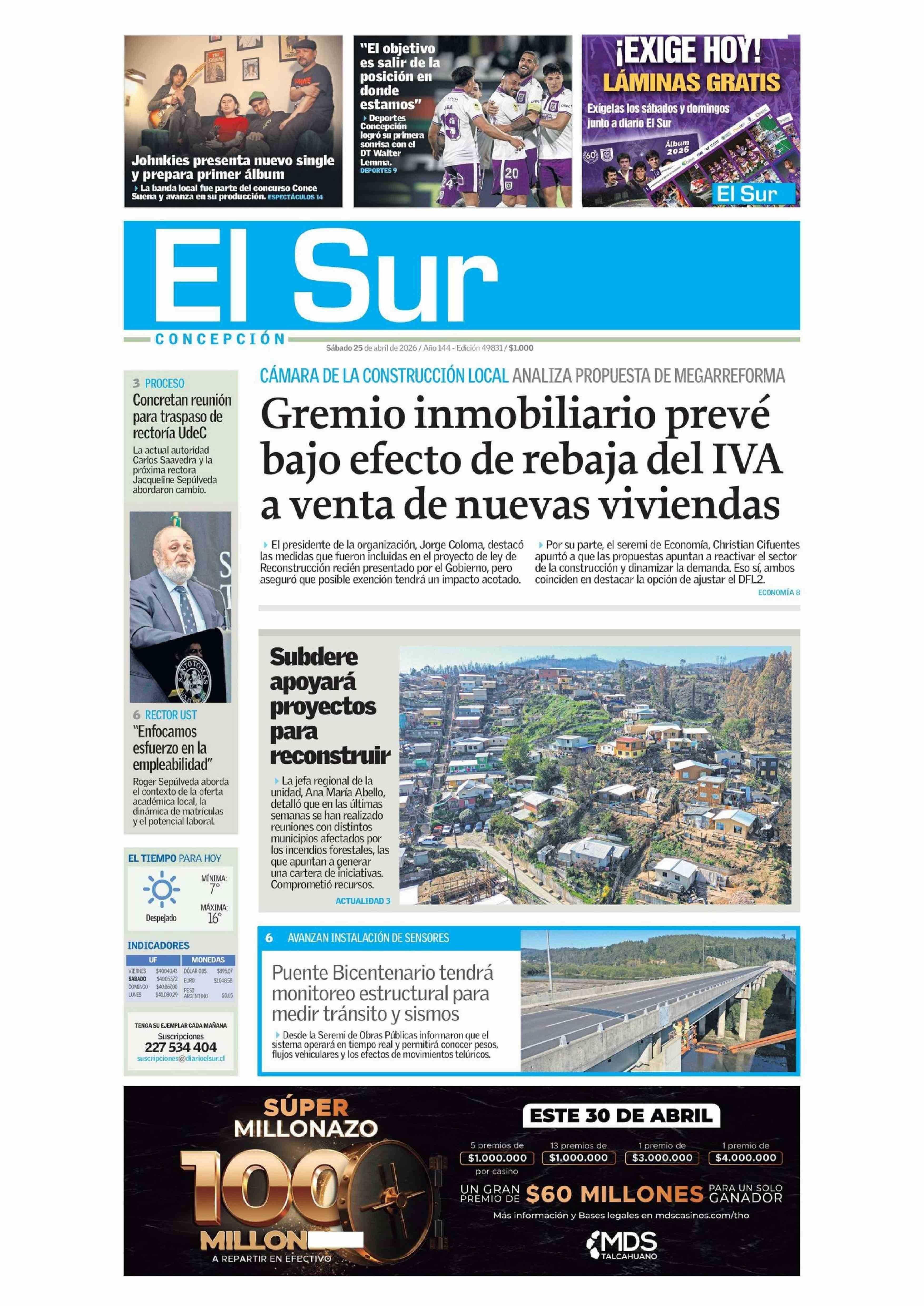 PORTADA EL SUR CHILE 25-04-2026 El Sur |