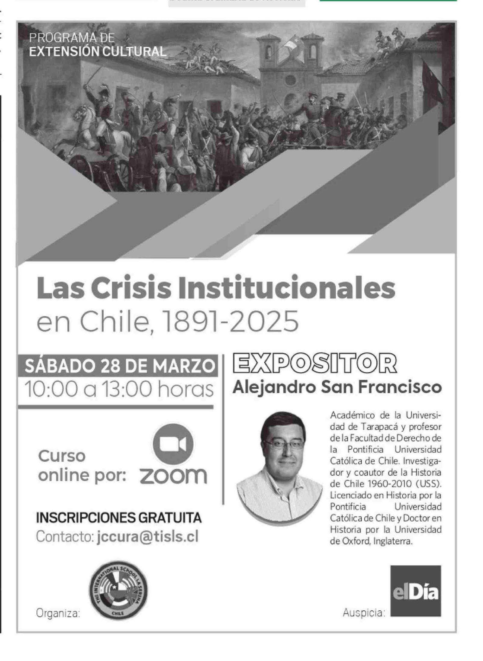 Aviso Publicitario: LAS CRISIS INSTITUCIONALES EN CHILE 1891-2025 22-03-2026 El Día |