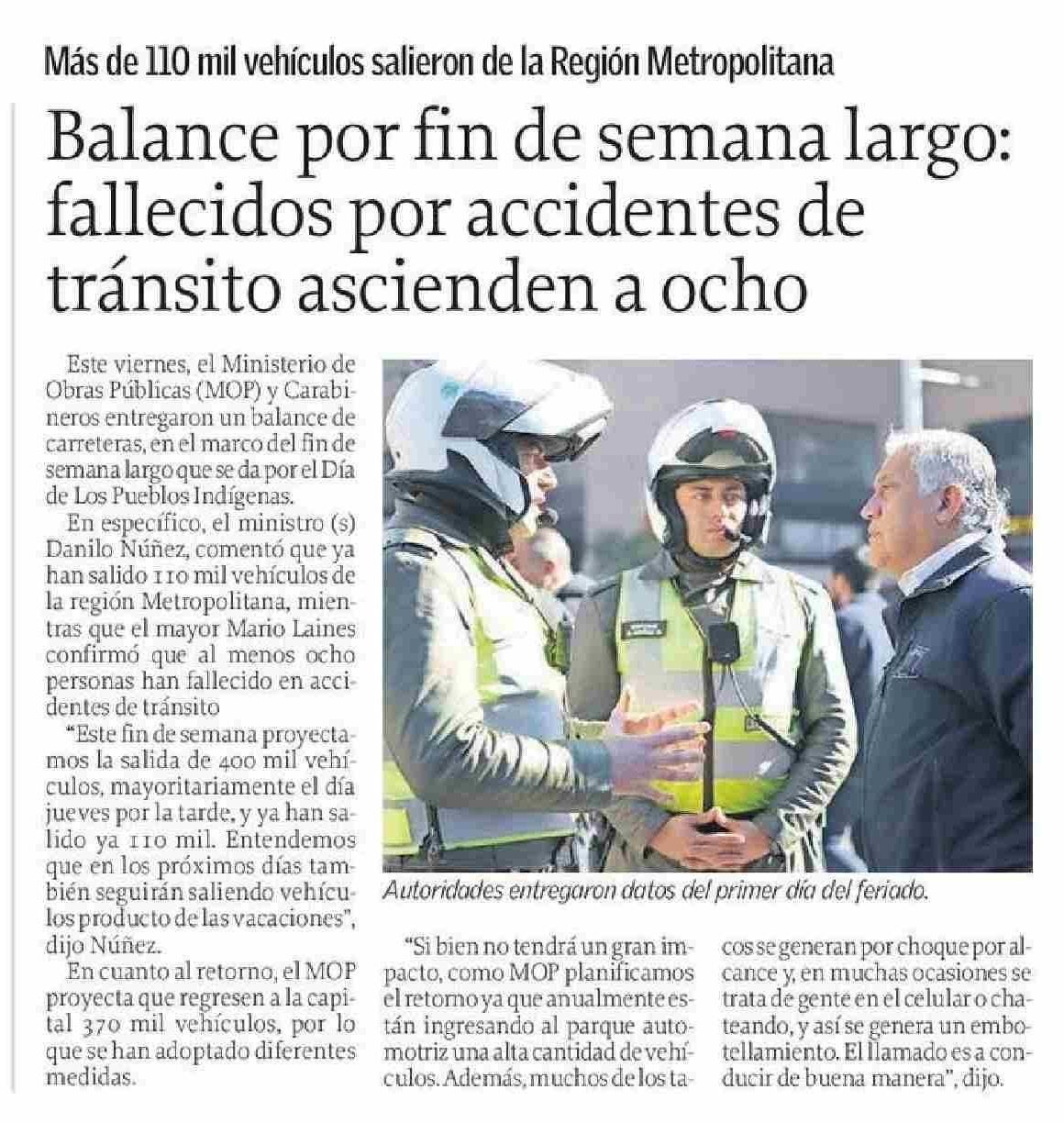 | Título: | Balance por fin de semana largo: fallecidos por accidentes de tránsito ascienden a ocho |