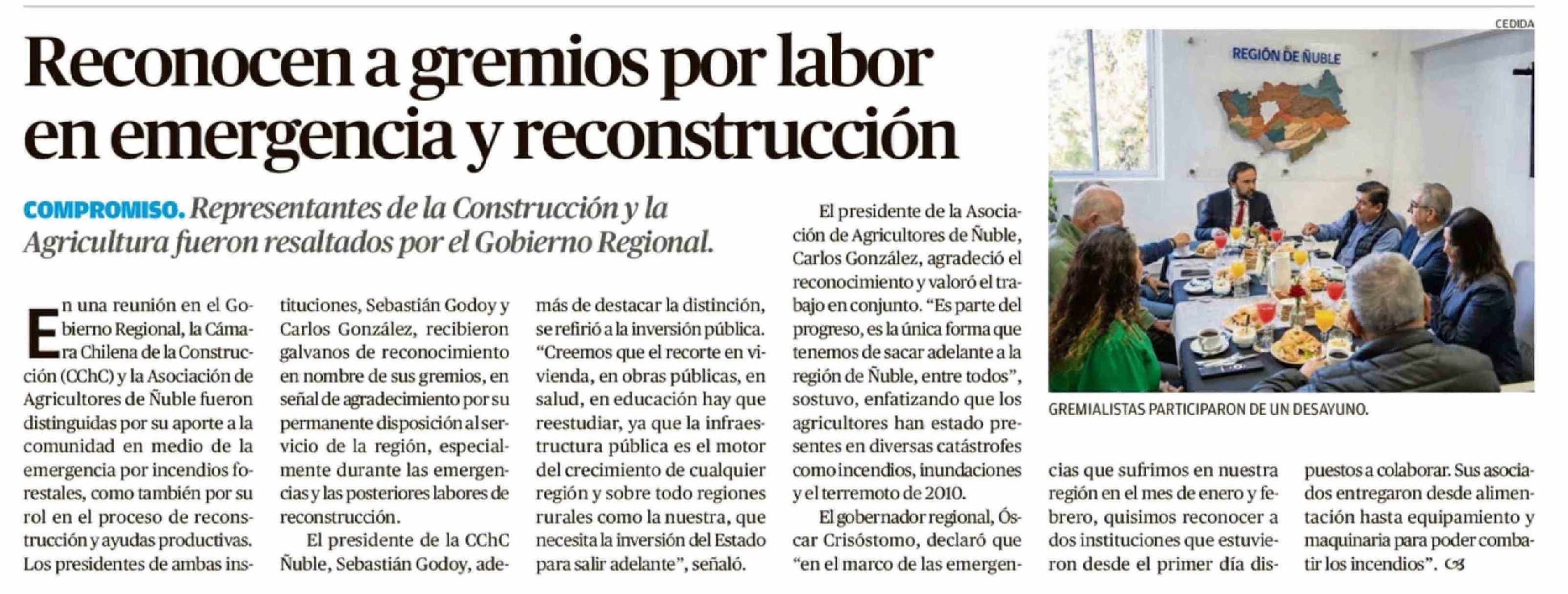 Reconocen a gremios por labor en emergencia y reconstrucción 25-03-2026 Crónica de Chillán |
