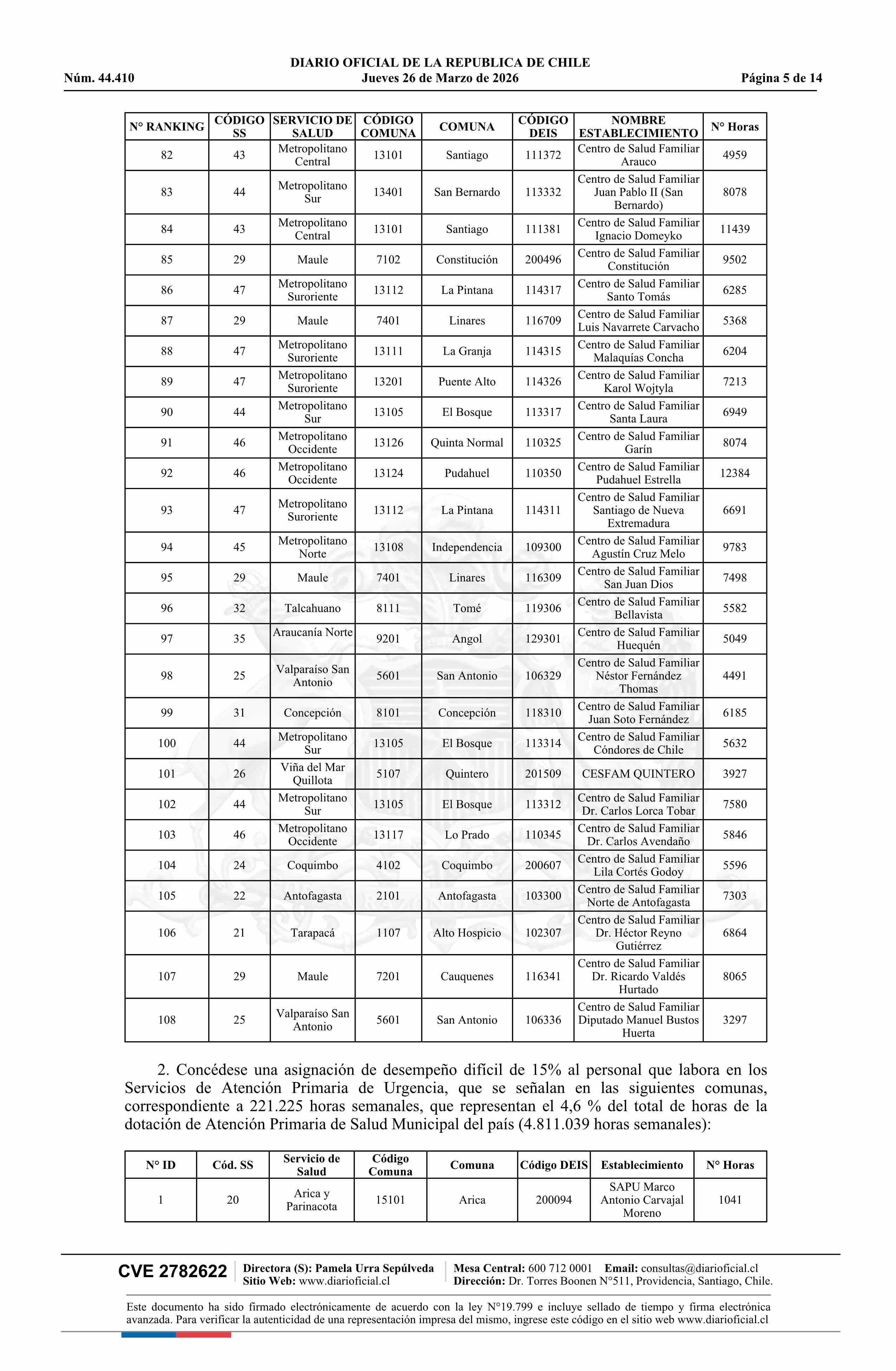 Título: Decreto número 29, de 2025.- Fija establecimientos urbanos de desempeño difícil de Atención Primaria de Salud, periodo 2026 a 2028