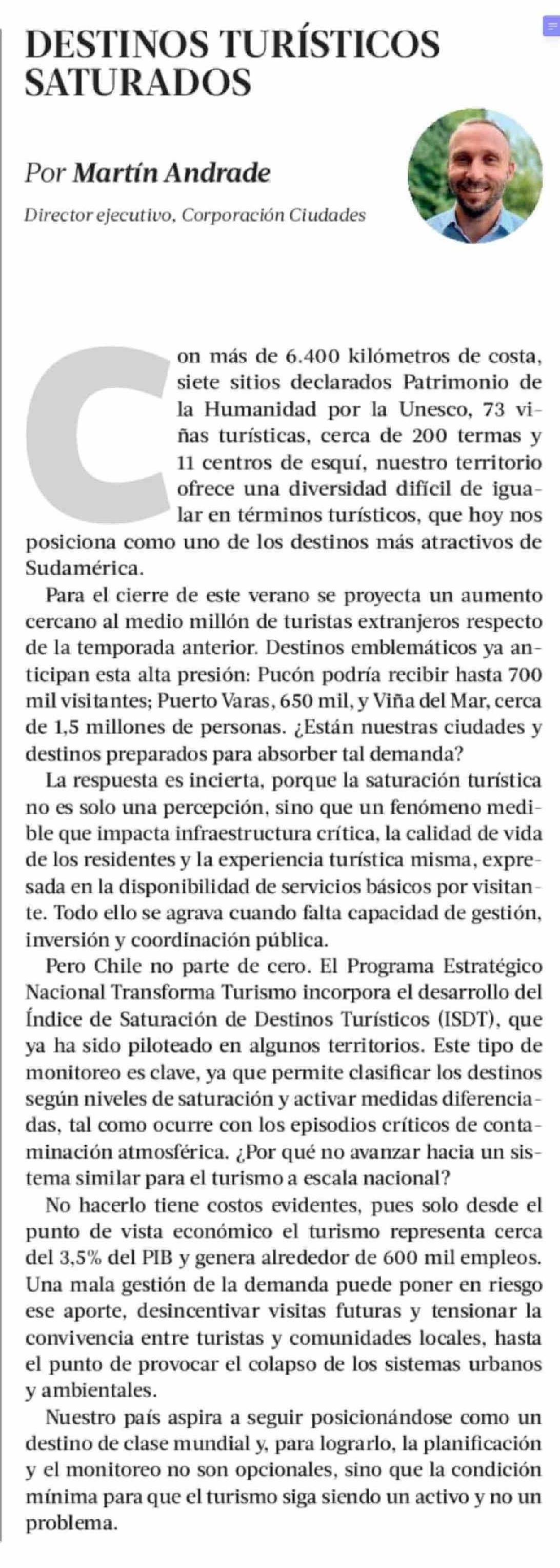 Título: Columnas de Opinión: DESTINOS TURÍSTICOS SATURADOS