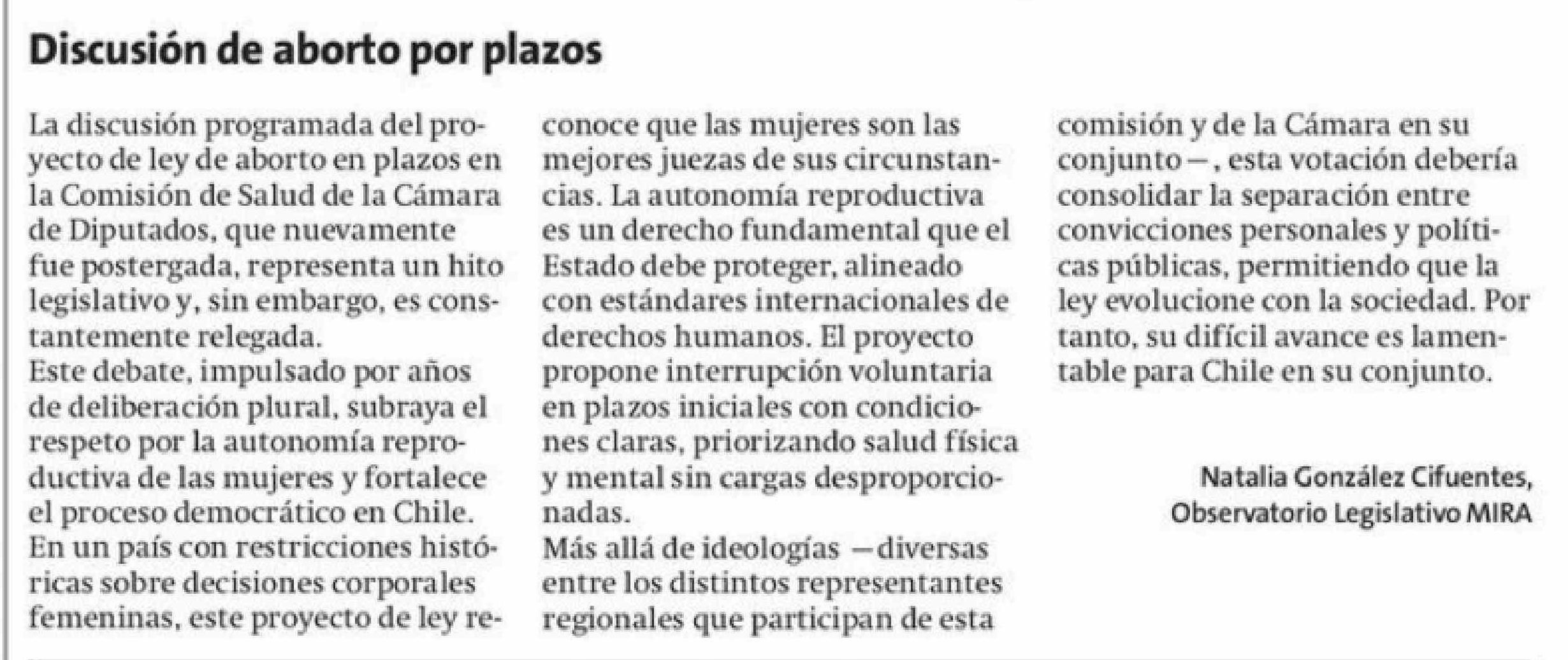 Cartas: Discusión de aborto por plazos 04-02-2026 La Estrella de Iquique |