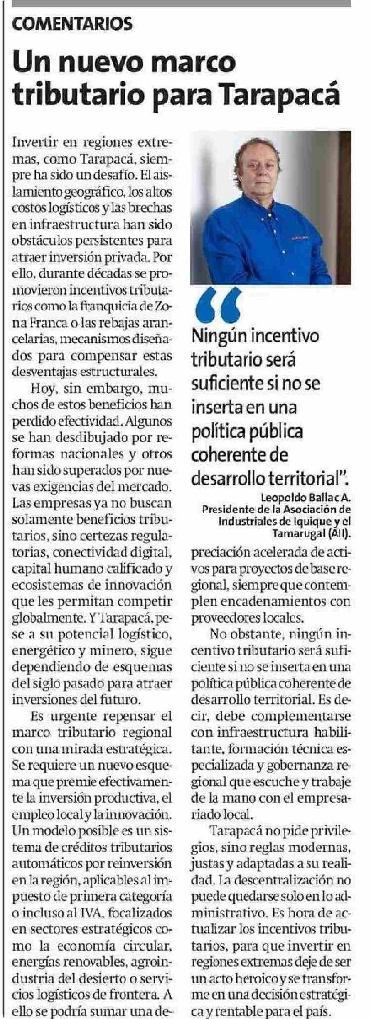 Un nuevo marco tributario para Tarapacá 04-06-2025 La Estrella de Iquique |