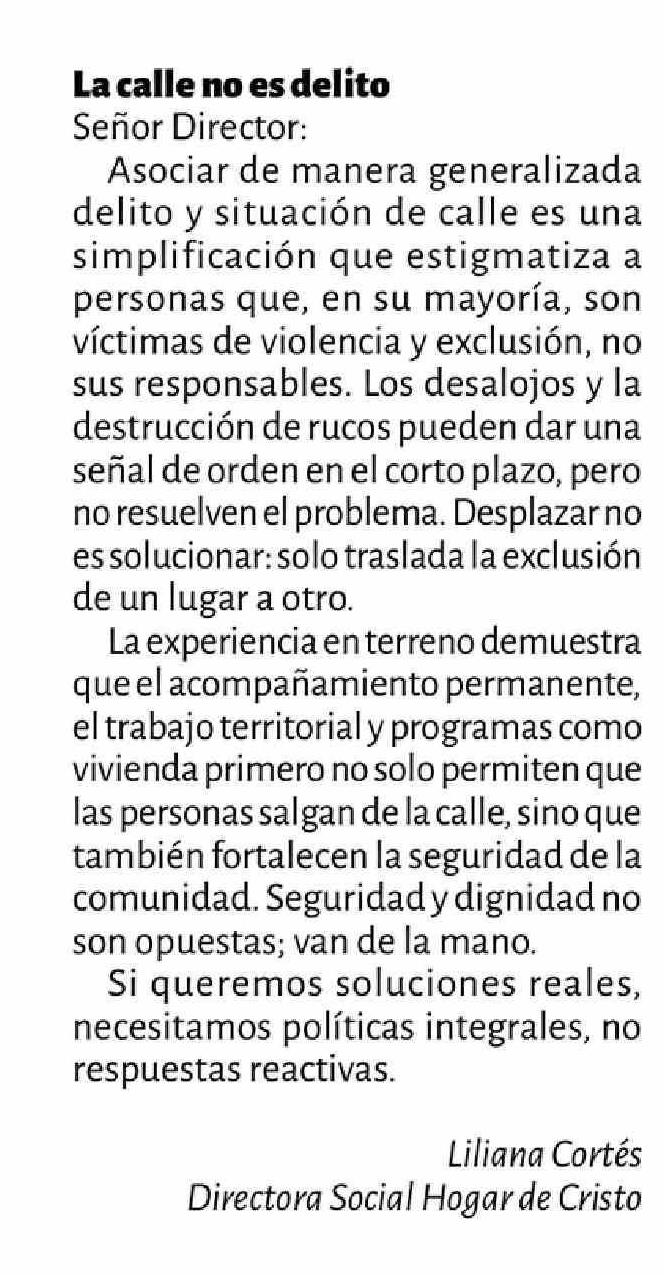 | Título: | CARTAS: La calle no es delito |