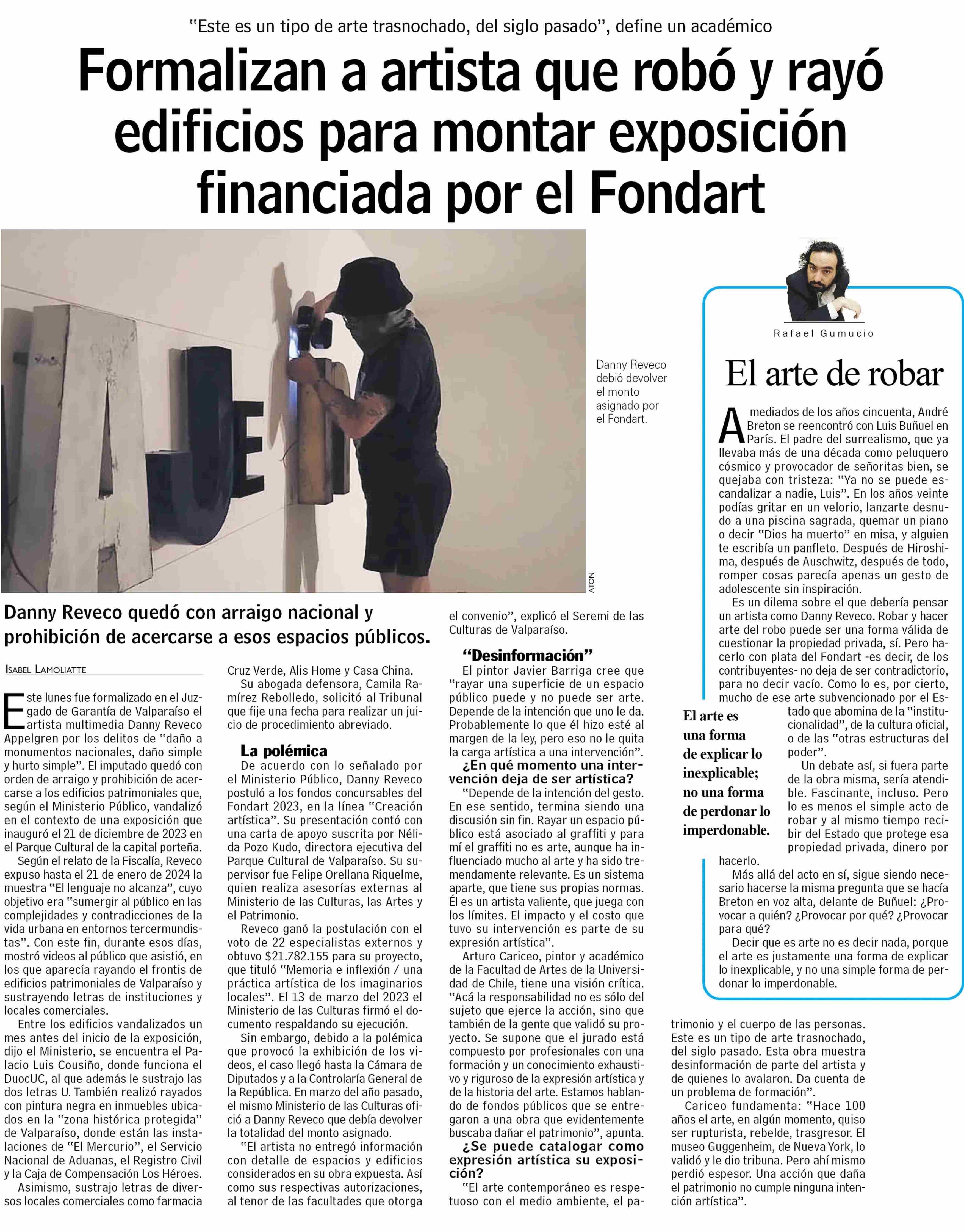 Título: Formalizan a artista que robó y rayó edificios para montar exposición financiada por el Fondart