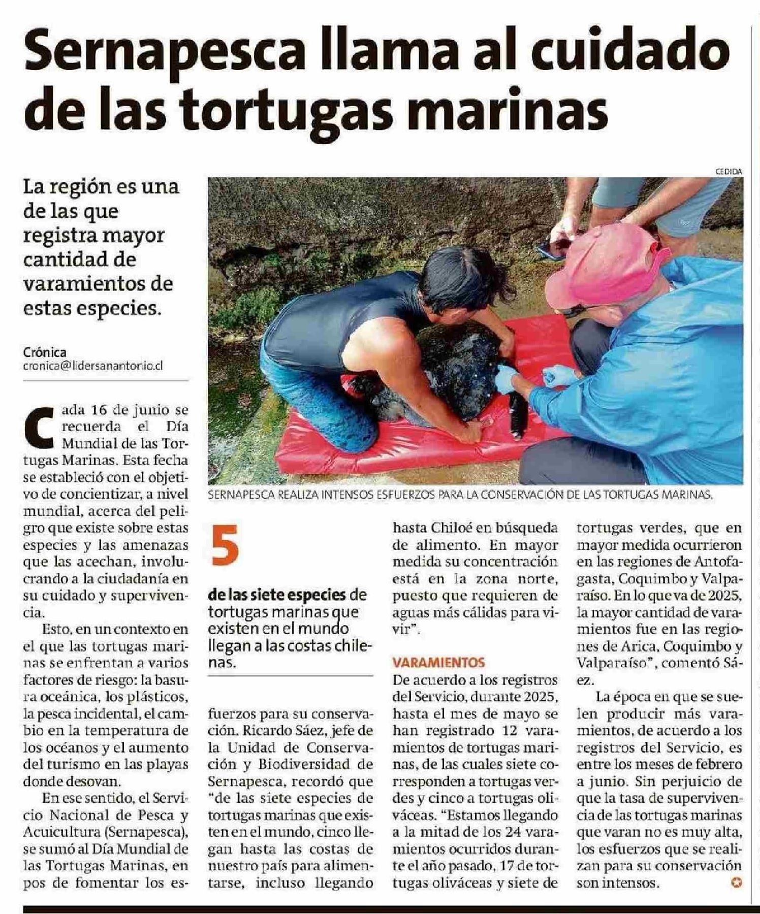 Sernapesca llama al cuidado de las tortugas marinas 17-06-2025 El Líder |
