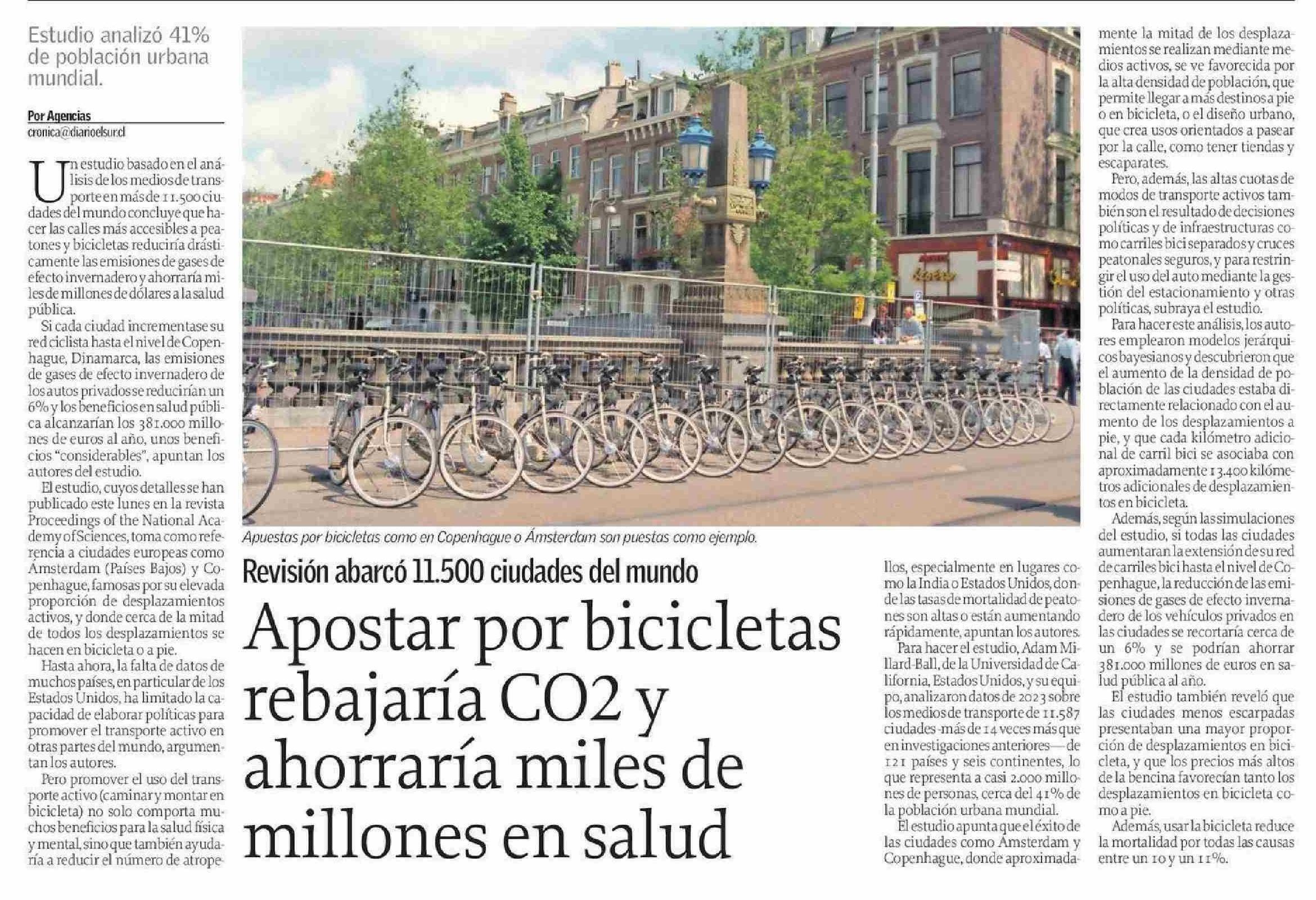 Apostar por bicicletas rebajaría CO2 y ahorraría miles de millones en salud 11-06-2025 El Sur |