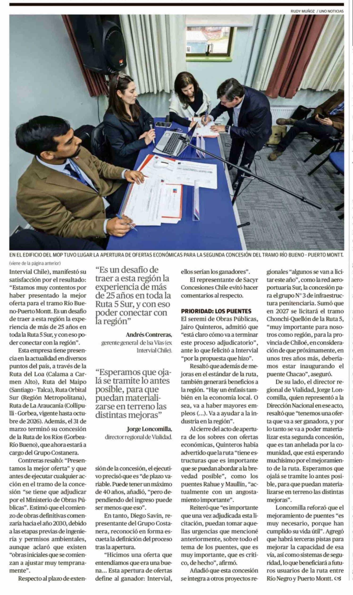 | Título: | Isa Vías presenta la mejor oferta económica para administrar la concesión de la Ruta 5 Sur |